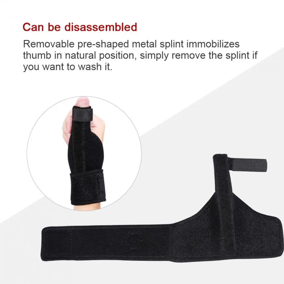 Съемный предварительно образный металлический штифт иммобилизует большой палец в естественном положении, просто снимите штифт, если вы хотите его помыть.