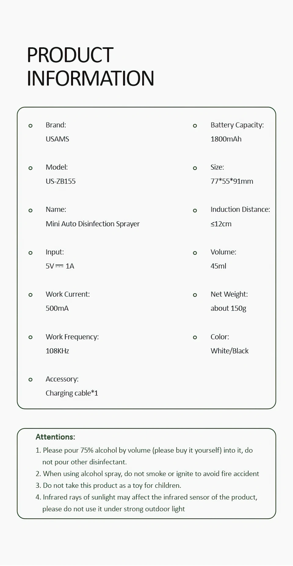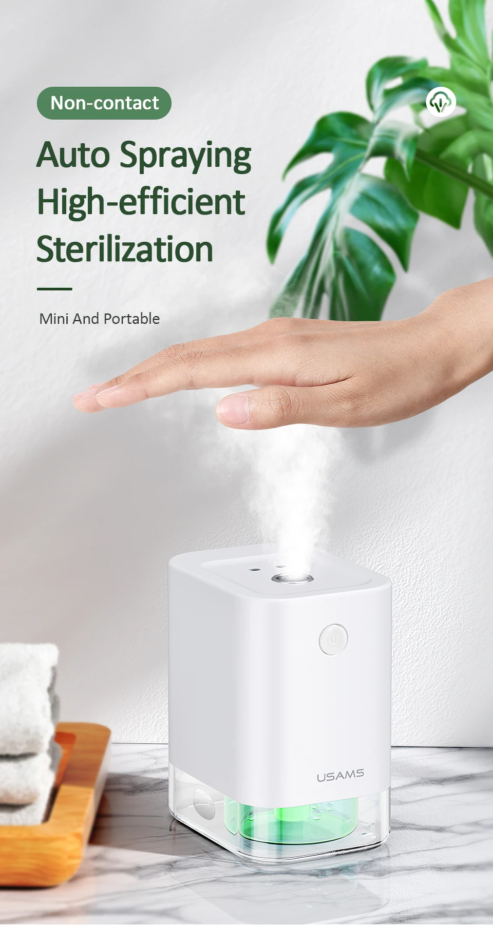 USAMS мини ручная дезинфекционная машина автоматический алкогольный распылитель тумана Интеллектуальный Бесконтактный дезинфицирующее средство для рук Rechrgeable