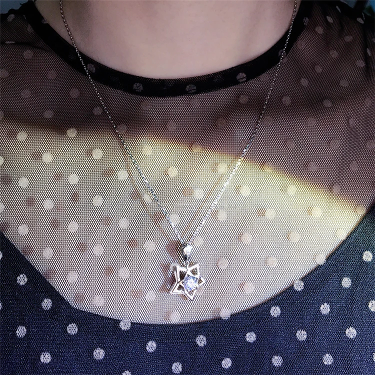 925 серебро звезды форма уникальный дизайн с 1 карат муассанит алмаз круглый бриллиантовым блеском белый камень делают этот кулон в виде идеальным подарком как особых мероприятий, для свадьбы anniverssary день рождения