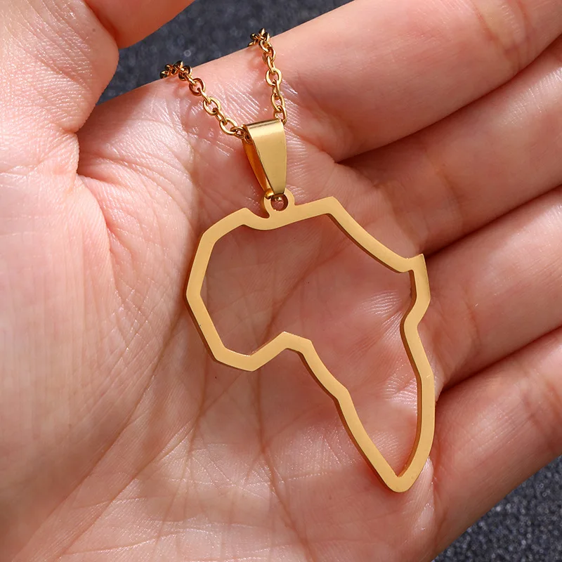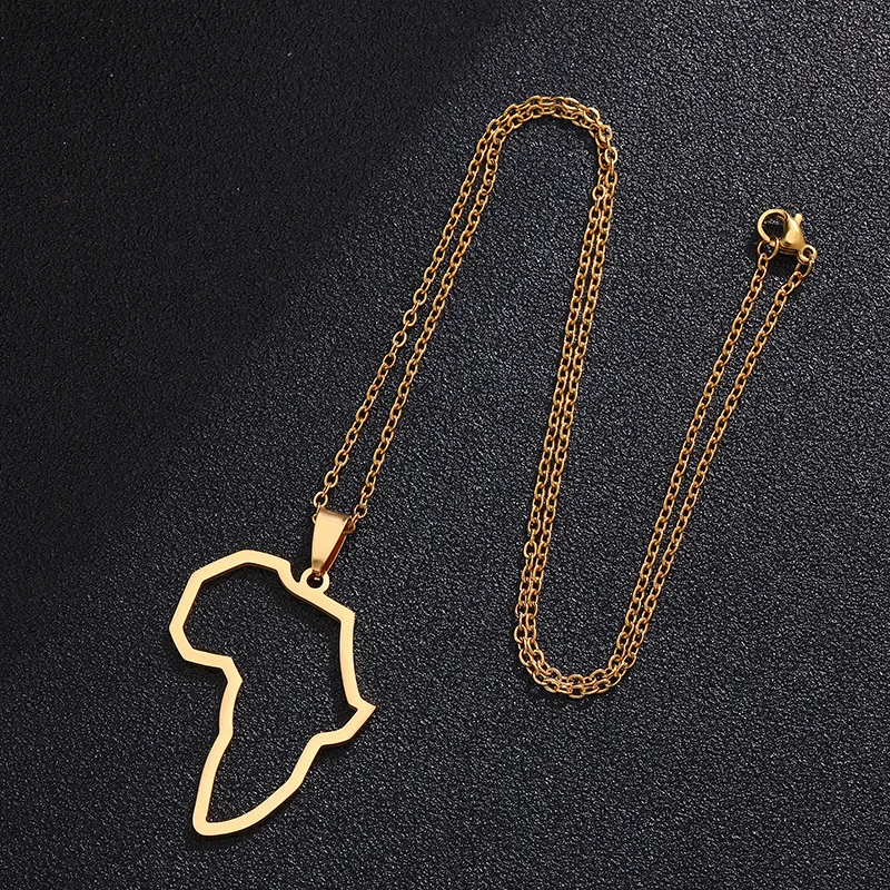 Ожерелье из нержавеющей стали с золотой картой Африки, подвеска в виде сердца в виде карты Африки, Африканское ожерелье в этническом стиле для женщин и мужчин, ювелирные изделия для дам, подарки