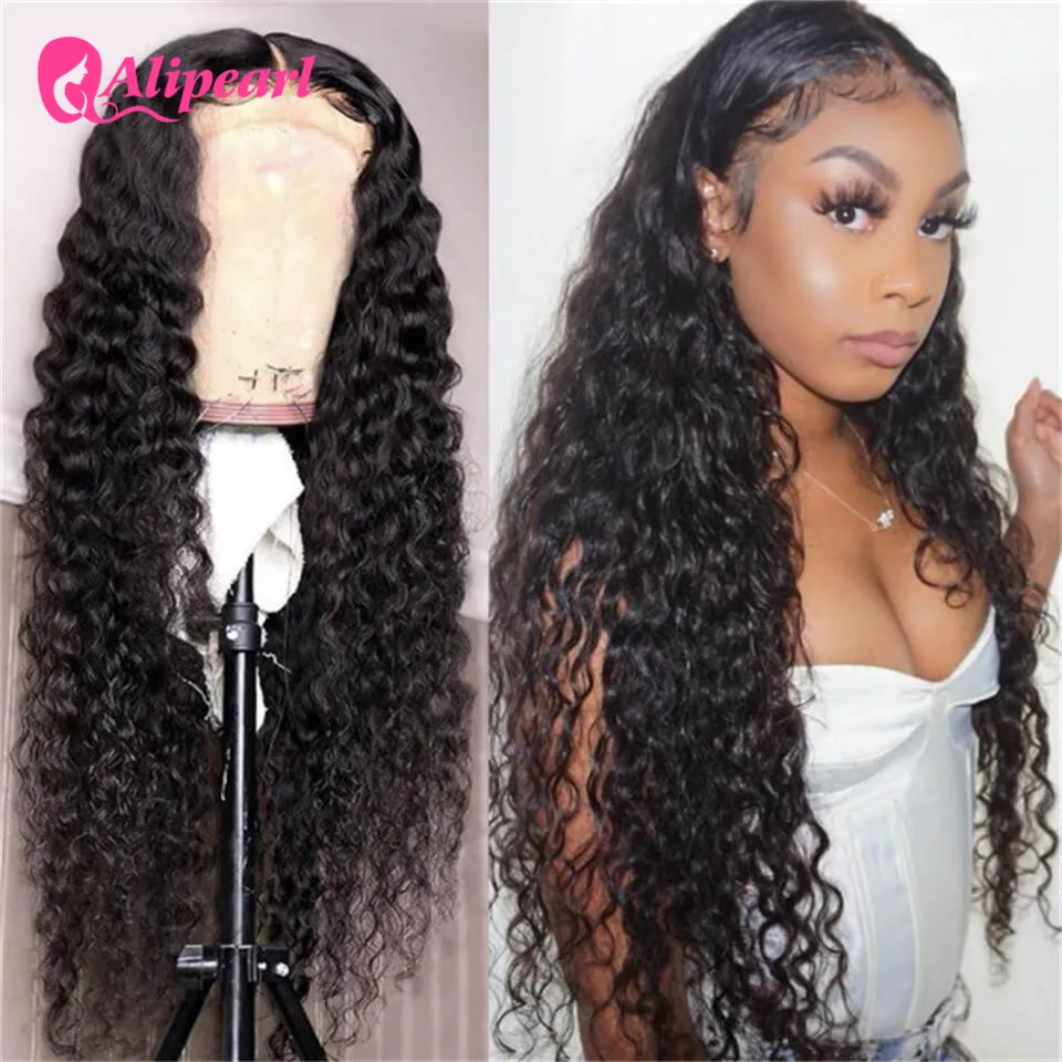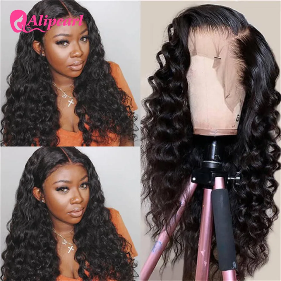 AliPearl свободные глубокая волна кружева передние человеческие волосы парики 130% 150% 180% плотность предварительно сорванные бразильские волосы парики