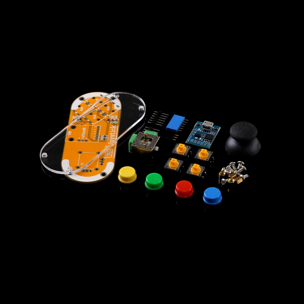 Digispark(ATting85) X1 Двухосевой джойстик X1 Кнопка X4 Крышка кнопки X4 Акриловая доска X1 Винт X8 Медный столб X4 DataLine X1 PCB (включая патч-компоненты) X1