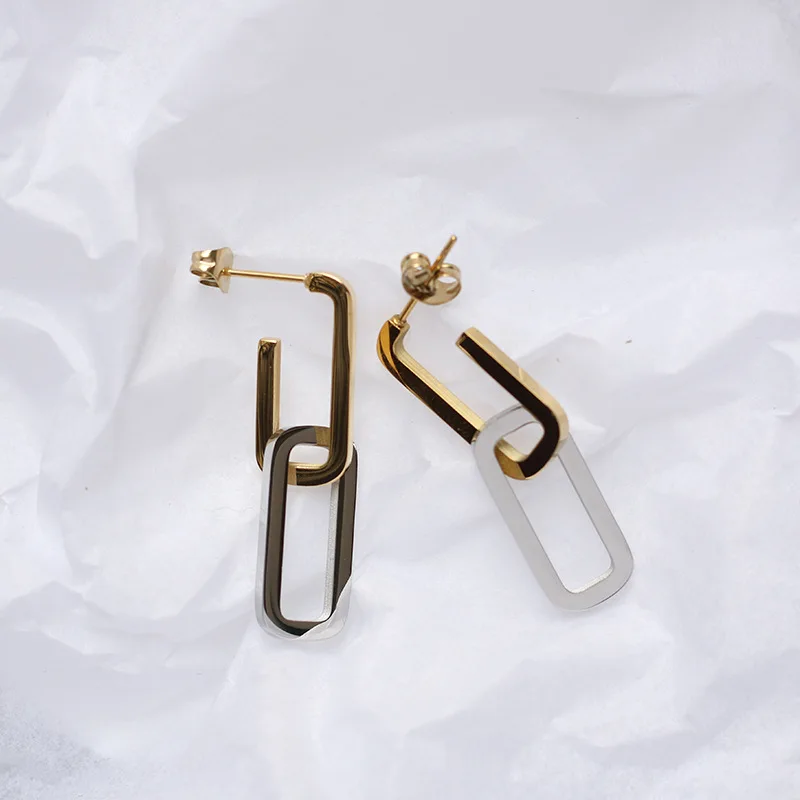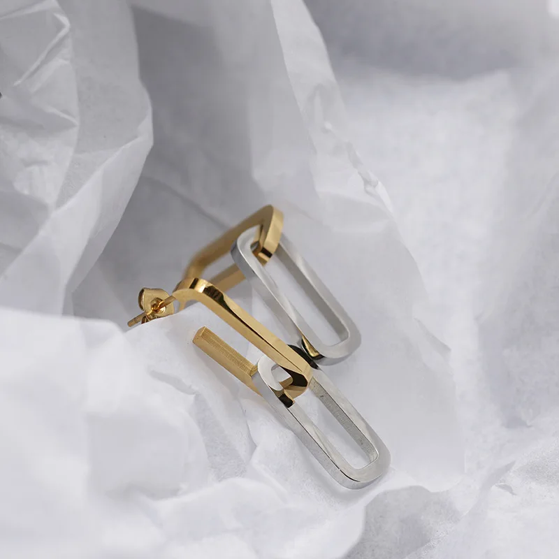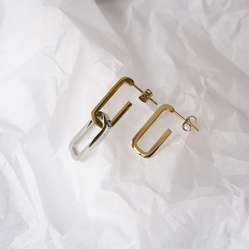 Материал: нержавеющая сталь Цвет: Золотой/Серебряный Женские Висячие серьги со съемной цепочкой, двухцветные Асимметричные Длинные серьги из нержавеющей стали в стиле панк золотого цвета