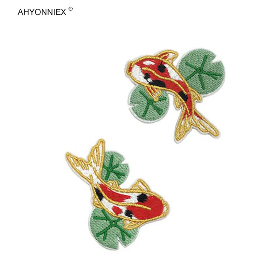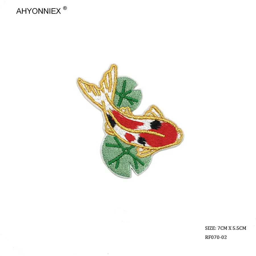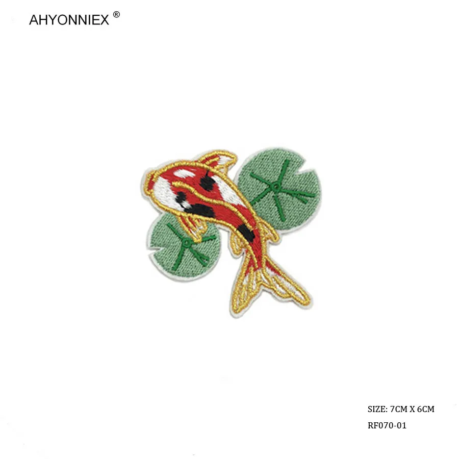 AHYONNIEX 1 шт. DIY Вышивка маленькая рыбка нашивки «Лотос» тканевые наклейки подарок ювелирные изделия мобильный телефон коробка украшения