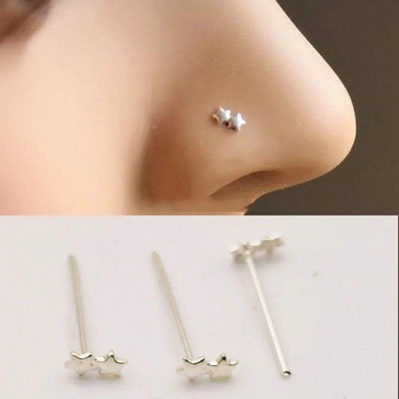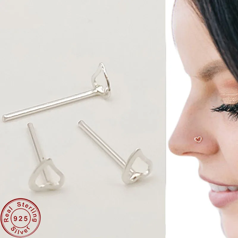 Материал: серебро 925 пробы Размер: 10*0,5 мм Сердце Звезда нос пирсинг шпилька для женщин 925 серебро минималистский Индия Нос Кольцо Панк Серебряный цвет