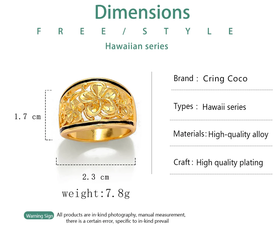 Cring Coco 2020 Rings for Women Fashion Goldren Frangipani Flower Jewelry Classic Designer Ladies Hawaii Polynesian Ring Summer