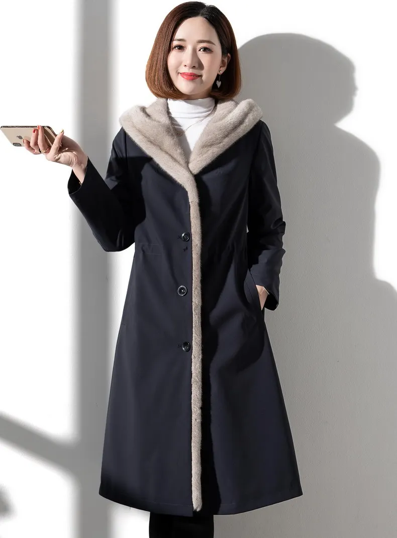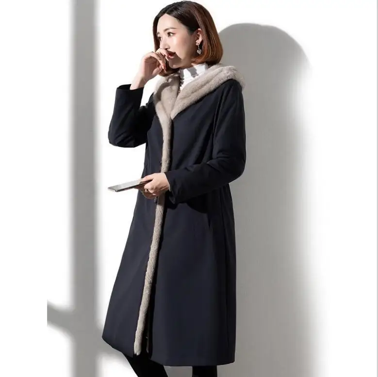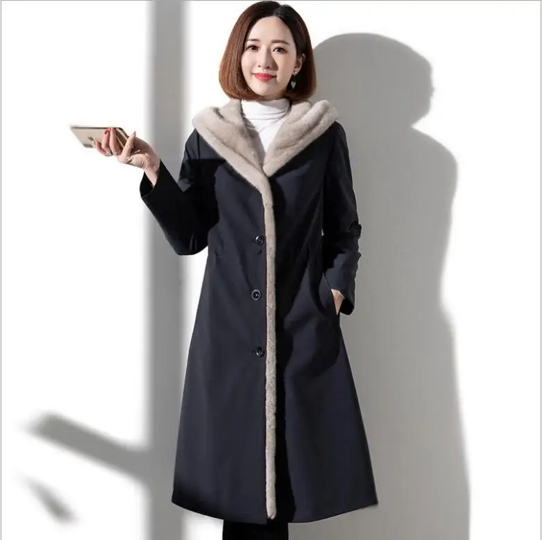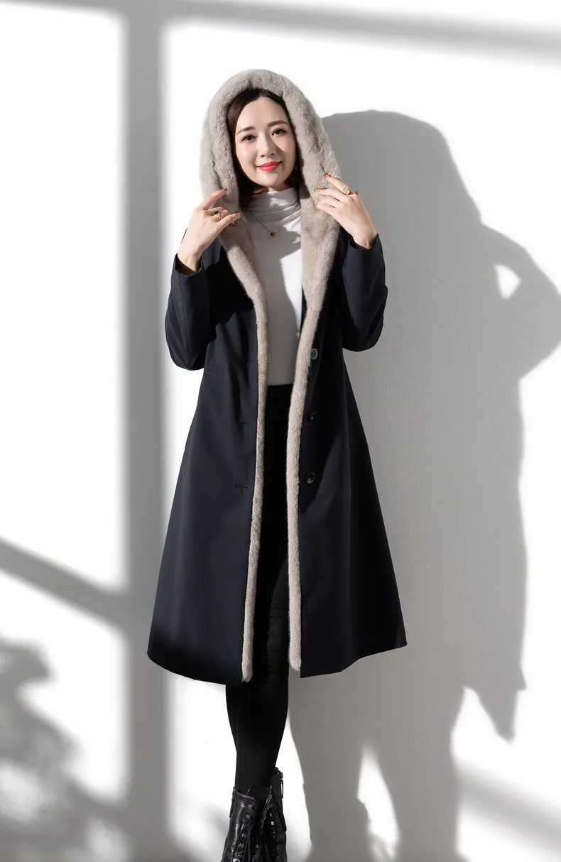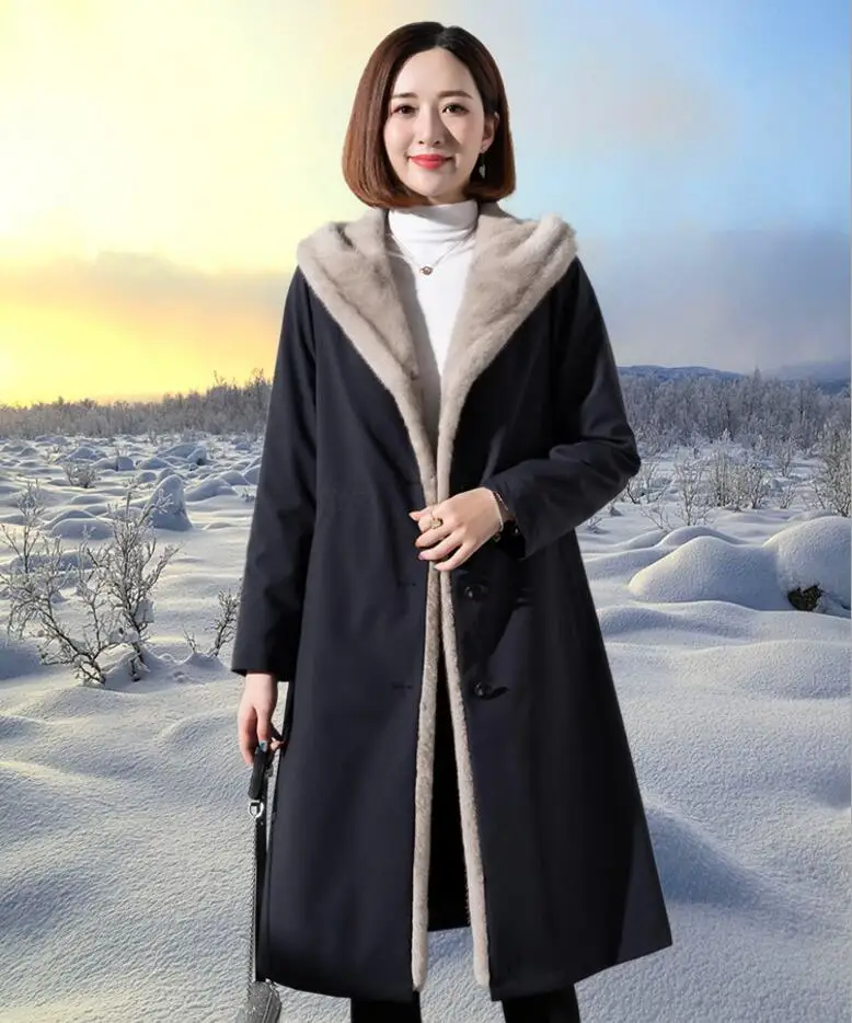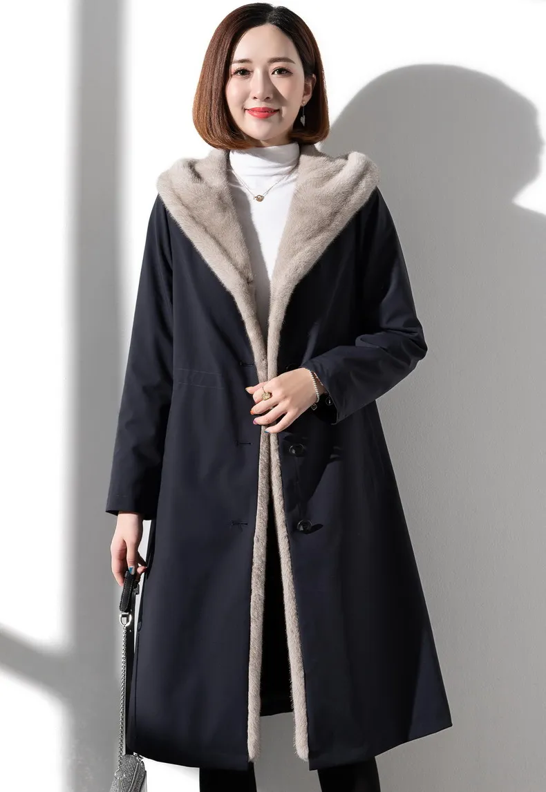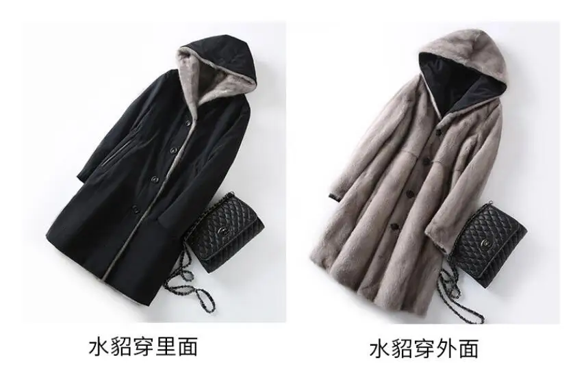 Женская длинная шуба из искусственного меха с обе стороны, пальто из искусственного меха норки на подкладке, Осень-зима