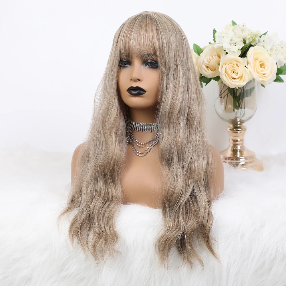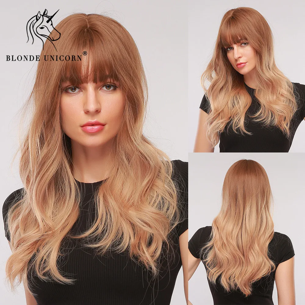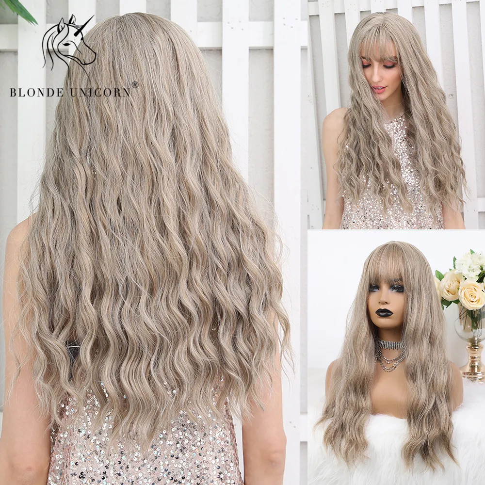 Блонд единорог средней длины натуральный волнистый светильник фиолетовый парик с челкой для белых и черных женщин синтетические волосы парики термостойкие