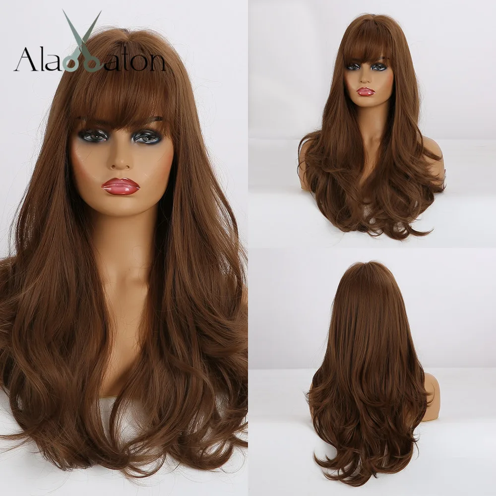 Женский термостойкий парик ALAN EATON, длинные волнистые синтетические парики с боковой челкой, цвета: черный, коричневый, медовый, золотистый