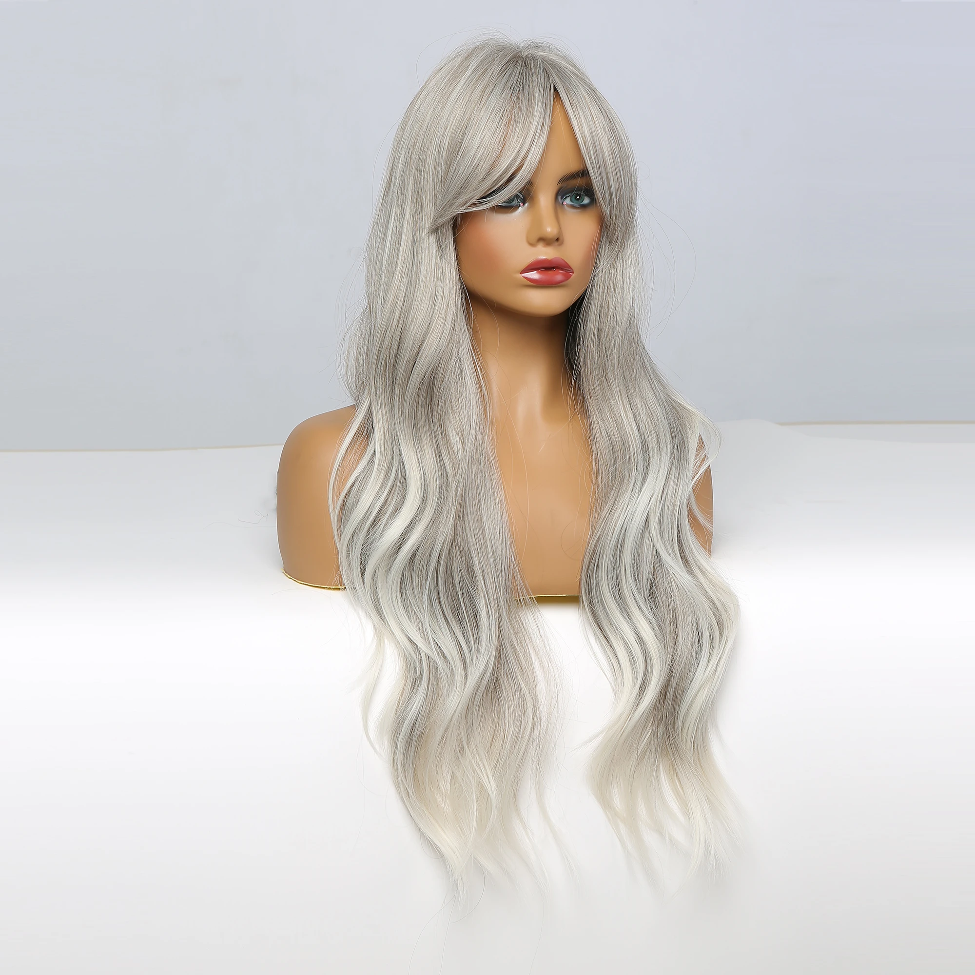 Парики из натуральных волнистых волос Блонд единорог с боковой челкой, светильник, вечерние парики серого и серебристого цвета для женщин, 5 цветов