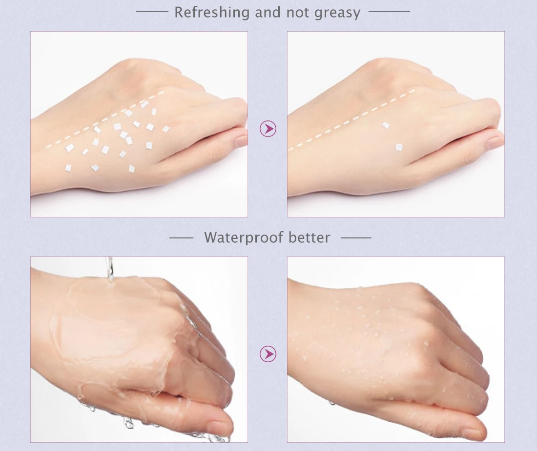 Водонепроницаемый и увлажняющий Освежающий и нежирный Становится белым при нанесении