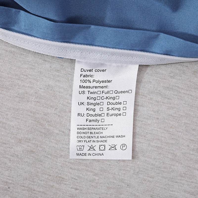 US-Twin(2 шт.) = пододеяльник: 168*229 см * 1, наволочка чехол: 50*75*1; США (3 шт.) = пододеяльник: 200*230 см * 1, наволочки: 50*75*2; US-Queen(3 шт.) = пододеяльник: 228*228 см * 1, наволочки: 50*75*2; US- King(3 шт.) = пододеяльник: 260*230 см * 1, наволочки: 50*90*2; Европейский (2 шт.) = пододеяльник: 135*200 см * 1, чехол для подушки: 50*75*1; Европейский двойной (3 шт.) = пододеяльник: 200*200 см * 1, наволочки: 50*75*2; EU-AU-King(3 шт.) = пододеяльник: 240*220 см * 1, наволочки: 50*75*2; AU-Single(2 шт.) = пододеяльник: 150*200 см * 1, наволочка чехол: 50*75*1; AU-Double(3 шт.) = пододеяльник: 180*210 см * 1, наволочки: 50*75*2; AU-Queen(3 шт.) = пододеяльник: 210*210 см * 1, наволочки: 50*75*2;