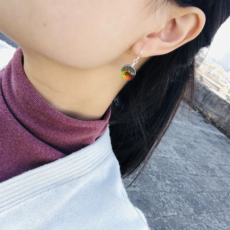 Имя:Knobspin 100% 925 стерлингового серебра 12 мм цветной стеклянный Свадебные обручальные кольца свисающие серьги для женщин, хорошее ювелирное изделие, оптовая продажа