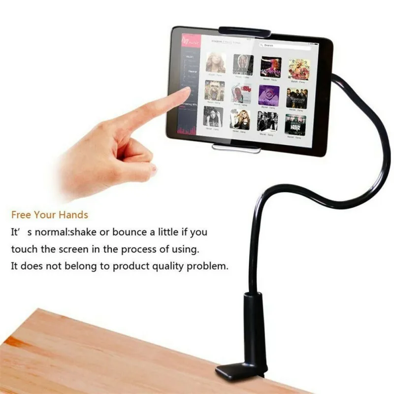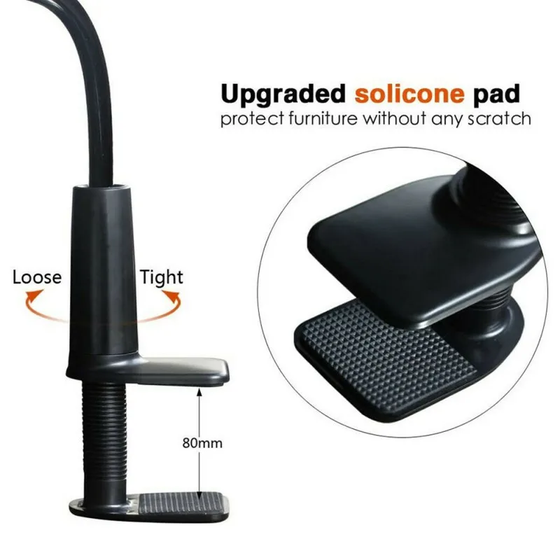 Вращение на 360 градусов Гибкая длинная рукоятка дизайн: зажим-регулируемый держатель для просмотра вашего устройства под любым углом или ориентацией во время спортзала, рабочего стола, кровати или кухни и т. Д.