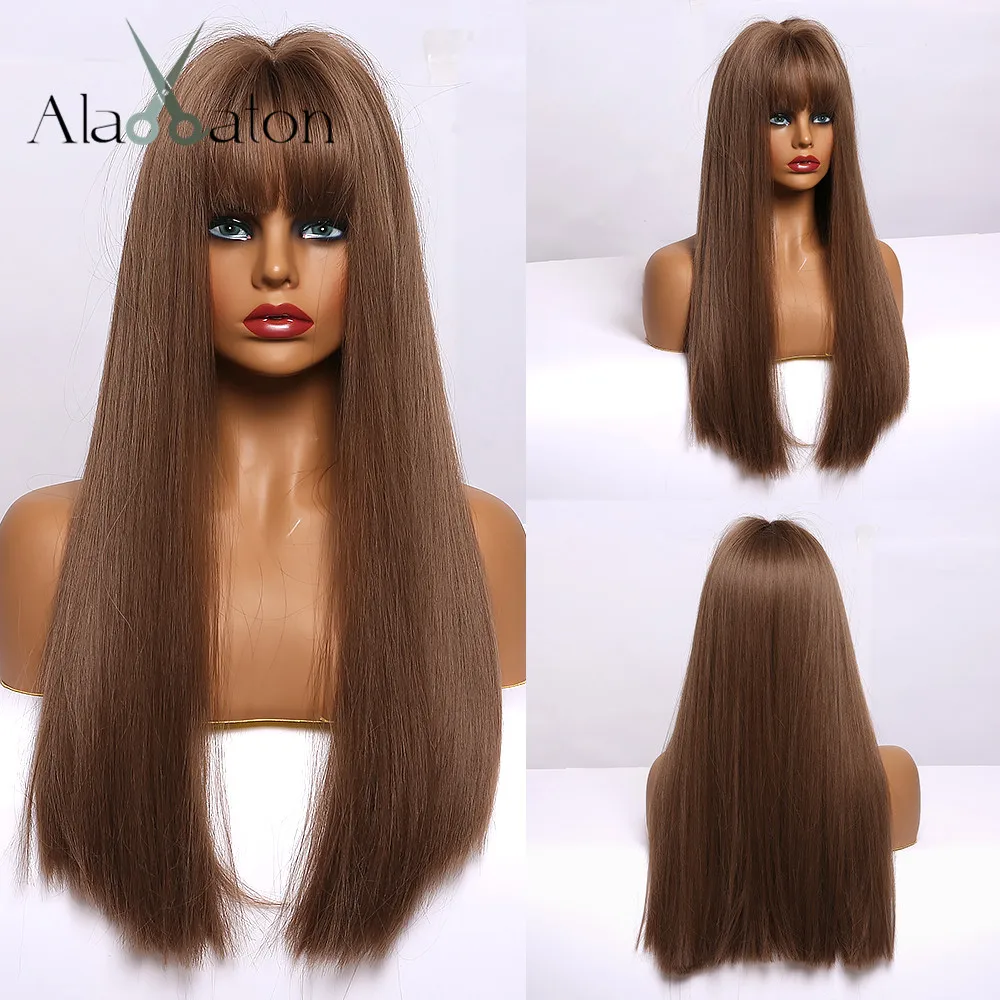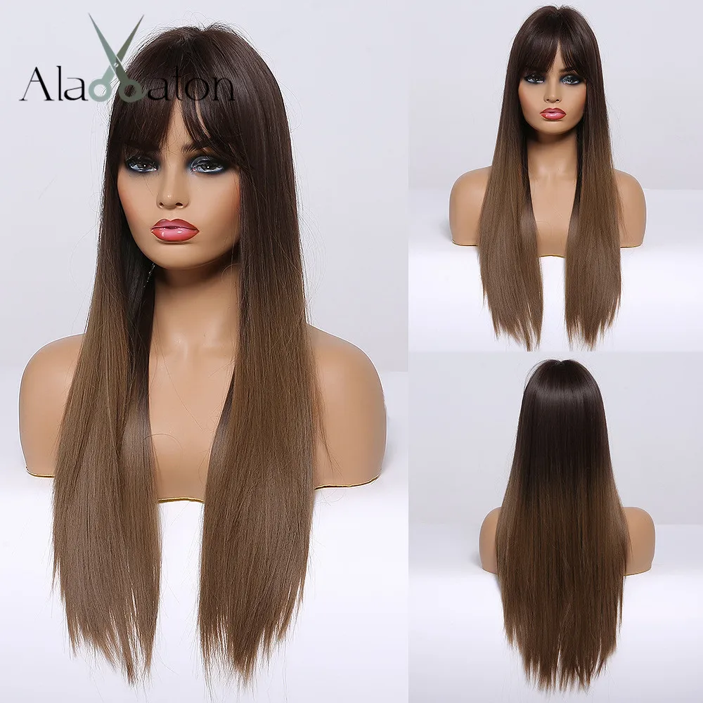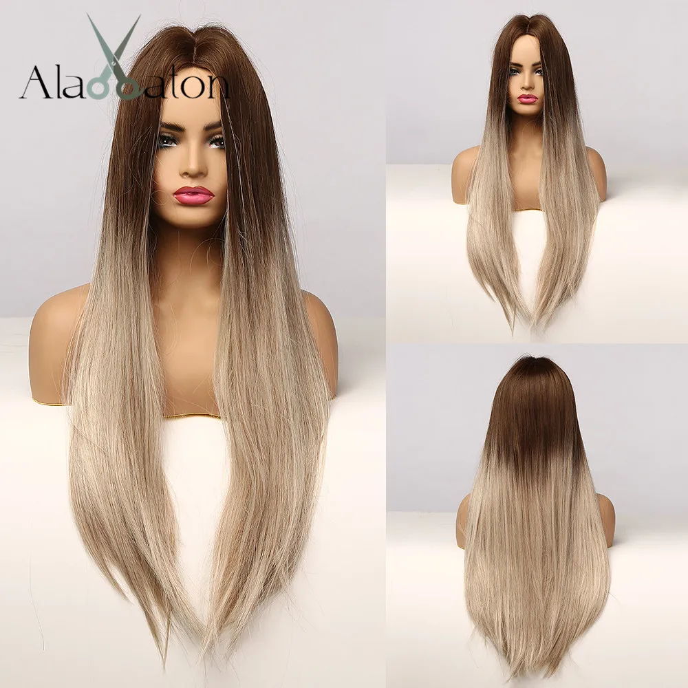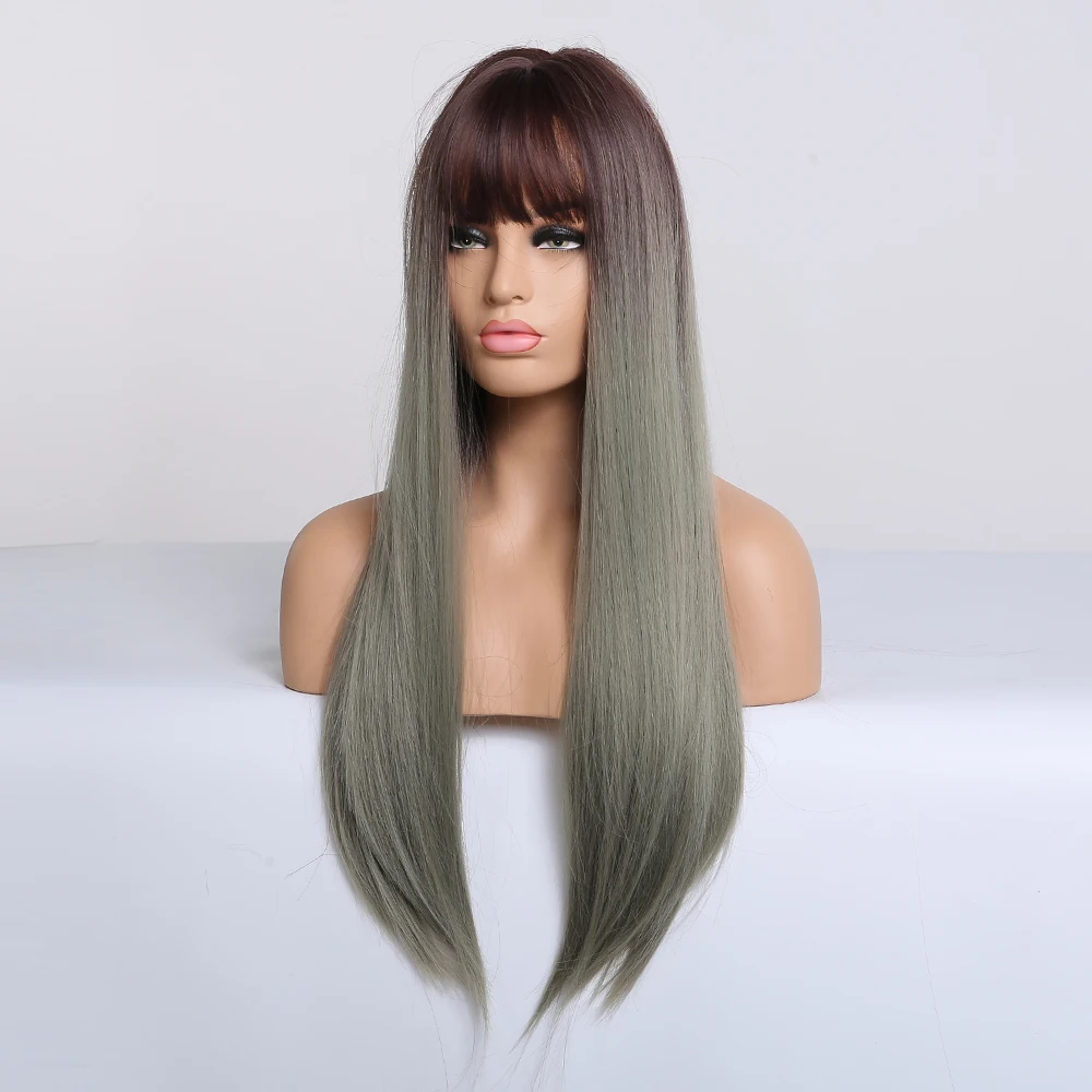 ALAN EATON длинные прямые Омбре коричневые серые пепельные парики для черных женщин натуральная средняя часть термостойкие косплей синтетические волосы