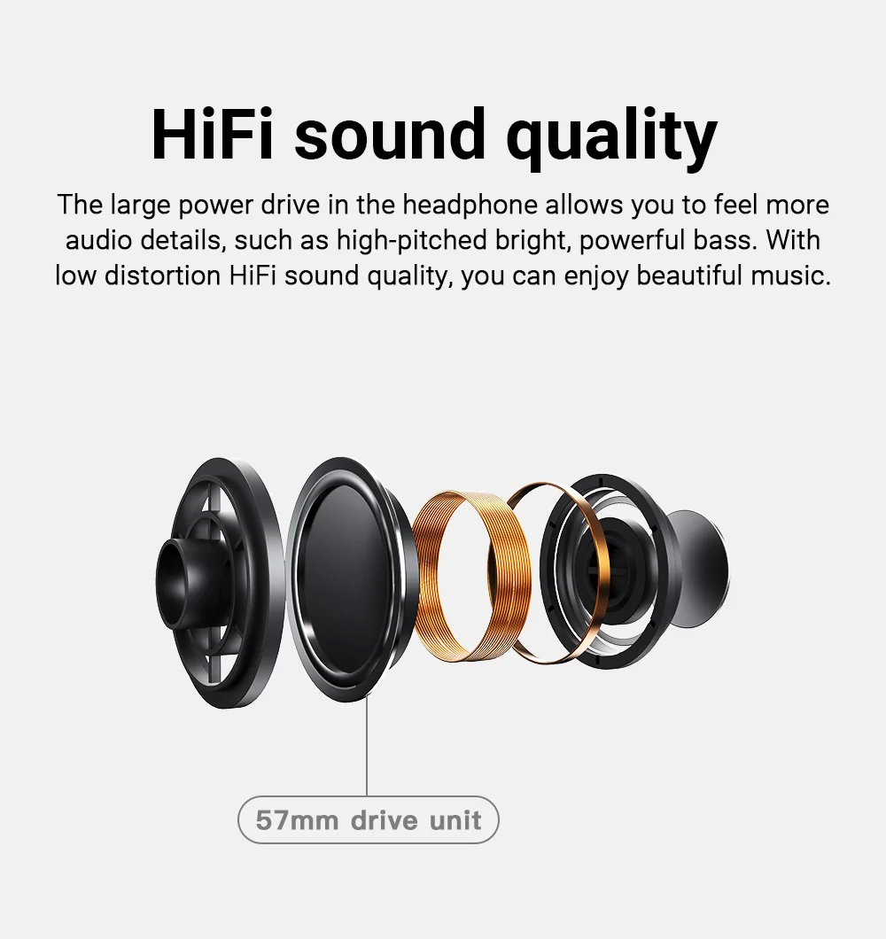 Потрясающий звук: Мощный блок привода 57 мм в наушниках показывает вам больше аудио деталей, таких как яркие высокие частоты и Насыщенные басы. С низким уровнем искажений HiFi Качество звука, вы можете наслаждаться красивой музыкой.