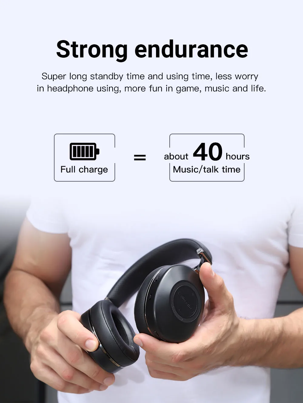 -До 40 часов непрерывной работы: Вы можете слушать более 600 песен в длительной поездке с полной зарядкой. Супер долгое время работы в режиме ожидания и время использования, уменьшает раздражение от использования наушников, и получать больше удовольствия в играх, музыки и жизни.