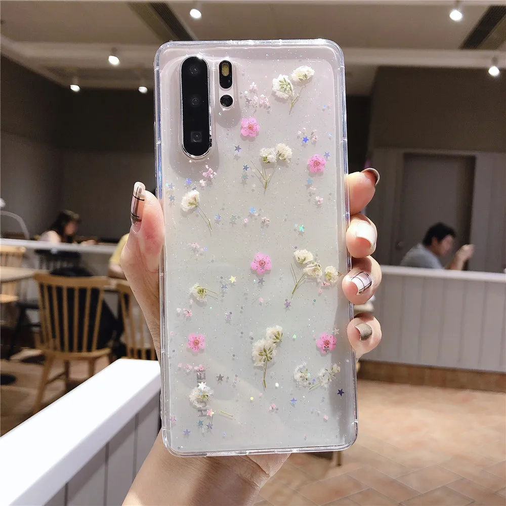 Блестящий сухой прессованный цветочный чехол для Xiaomi MI 8 8SE 9 9SE CC9E 10 ProLiteRedmi A7 8 8A 9 Note 5 6 7 8 8T 9 Pro K20 K30 Pro