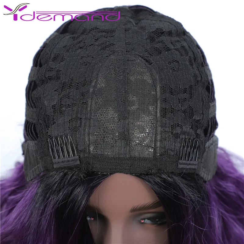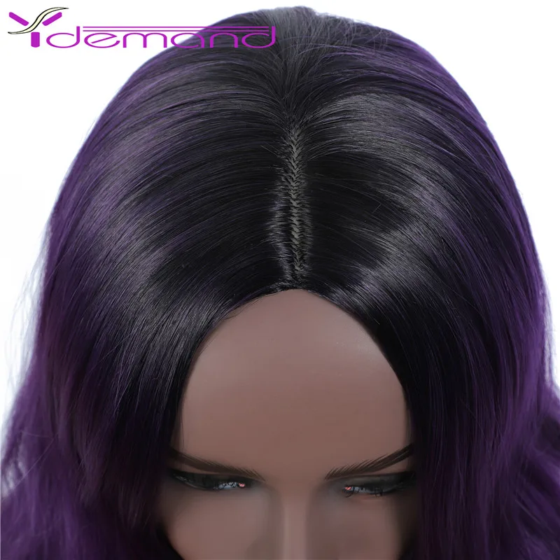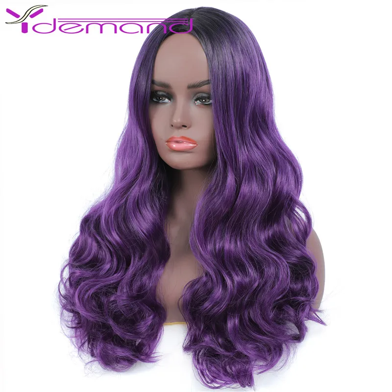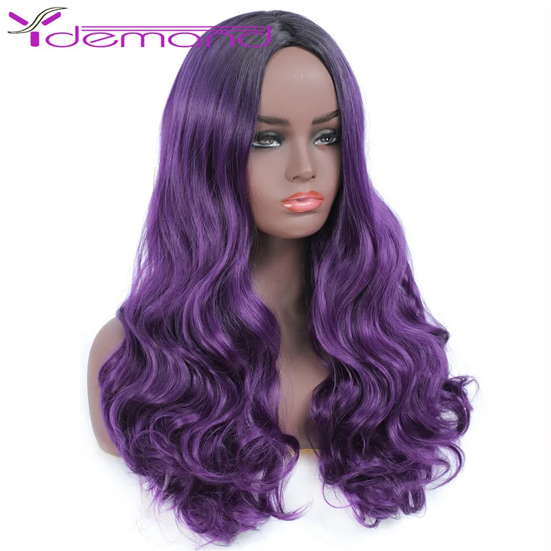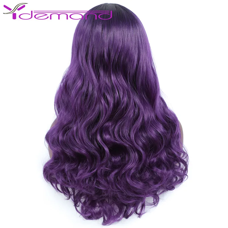 Y спрос длинный 1B фиолетовый Омбре парик волнистые волосы парики как человеческие волосы парик цветной для черных женщин preprucked