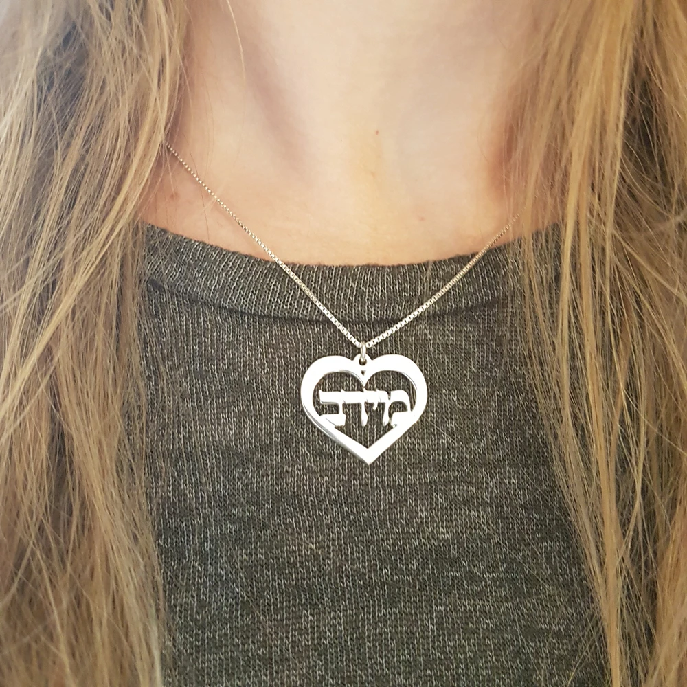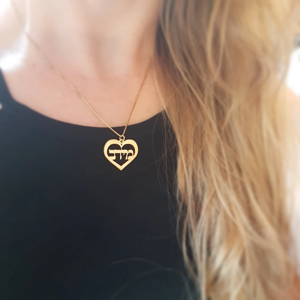Heart With Personalized Name Necklace Hebrew Pendant For Women Neck Jewelry Initial Choker Custom Necklaces Christmas Gift