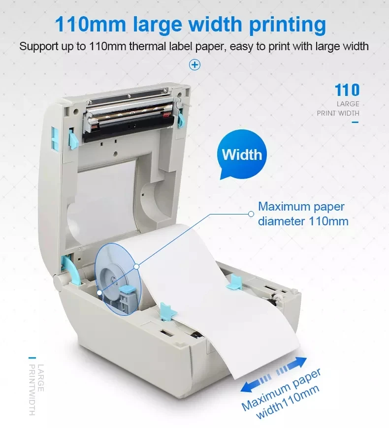 3. Регулируемая ширина: Самоклеящиеся этикетки может быть автоматически определить, и при печати ширина составляет от 4 см-11 см (1,57 дюйма до 4,3 дюйма). Термопринтер подходит для этикеток с различными потребностями, включая 4 ''x 6''/ 4 ''x 4''/ 4 ''x 3''/ 4 ''x 2''/ 4 ''x 1''/ 3 ''x 3''/ 3 ''x 2''/ 3 ''x 1''/2,25 ''x 1,25''/2'x1 'label.