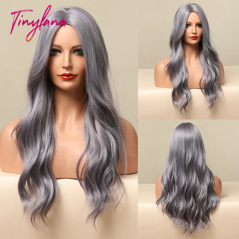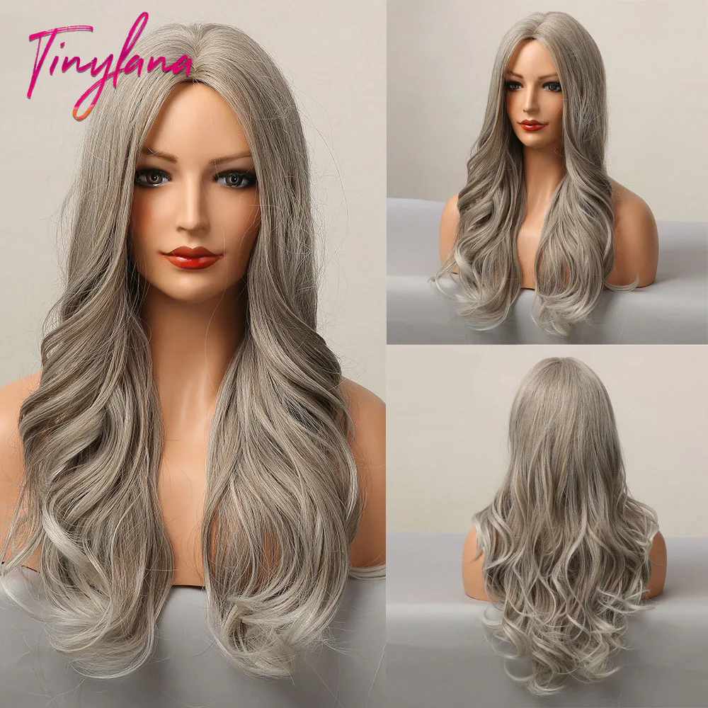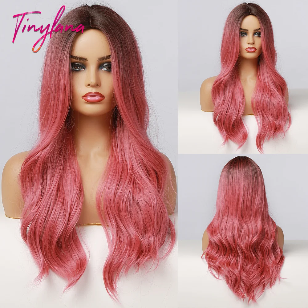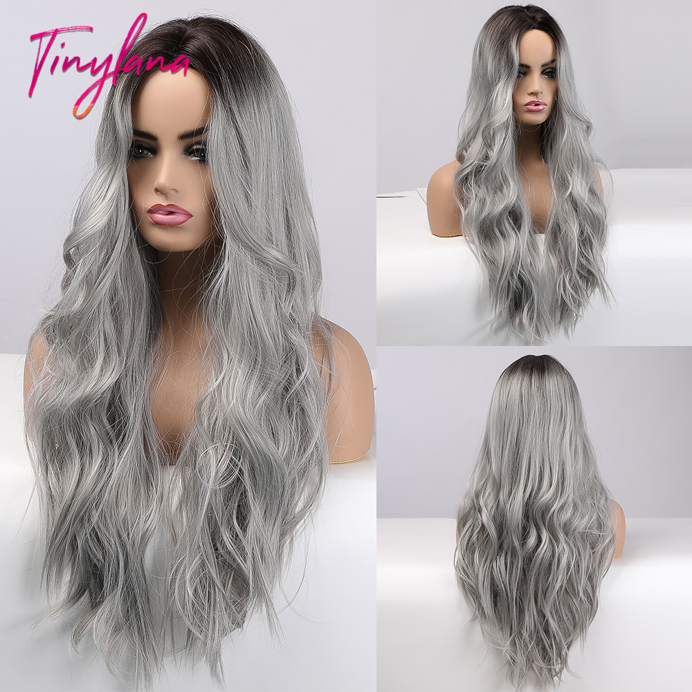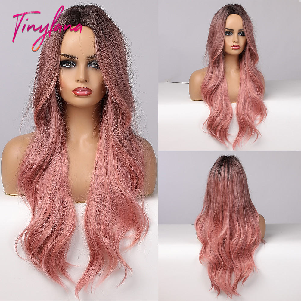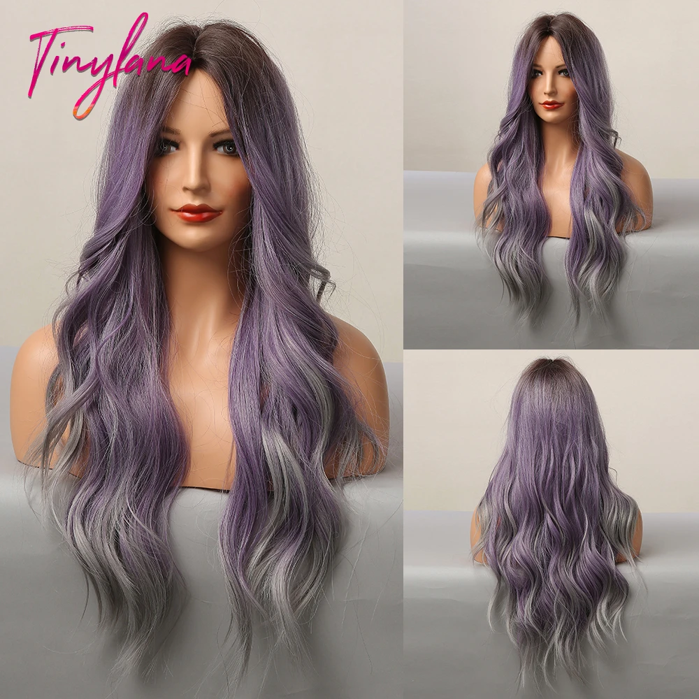 Крошечный LANA синтетический Омбре черный коричневый с золотыми бликами парики длинные волнистые термостойкие средняя часть косплей парики для женщин