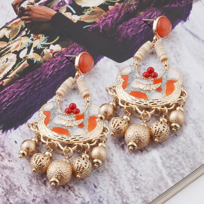 Drop Earrings Dangle Bohemian Multicolor Leather Large Earrings Long stick Charm Earring Fashion Big Ear Drops Copper