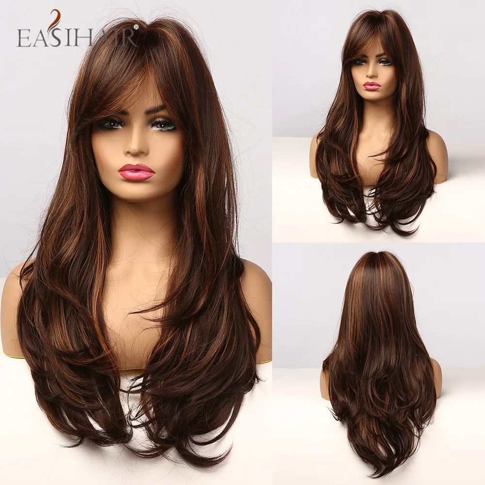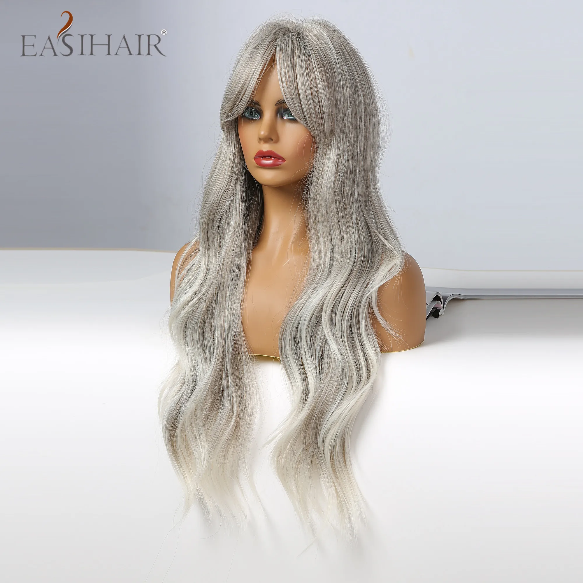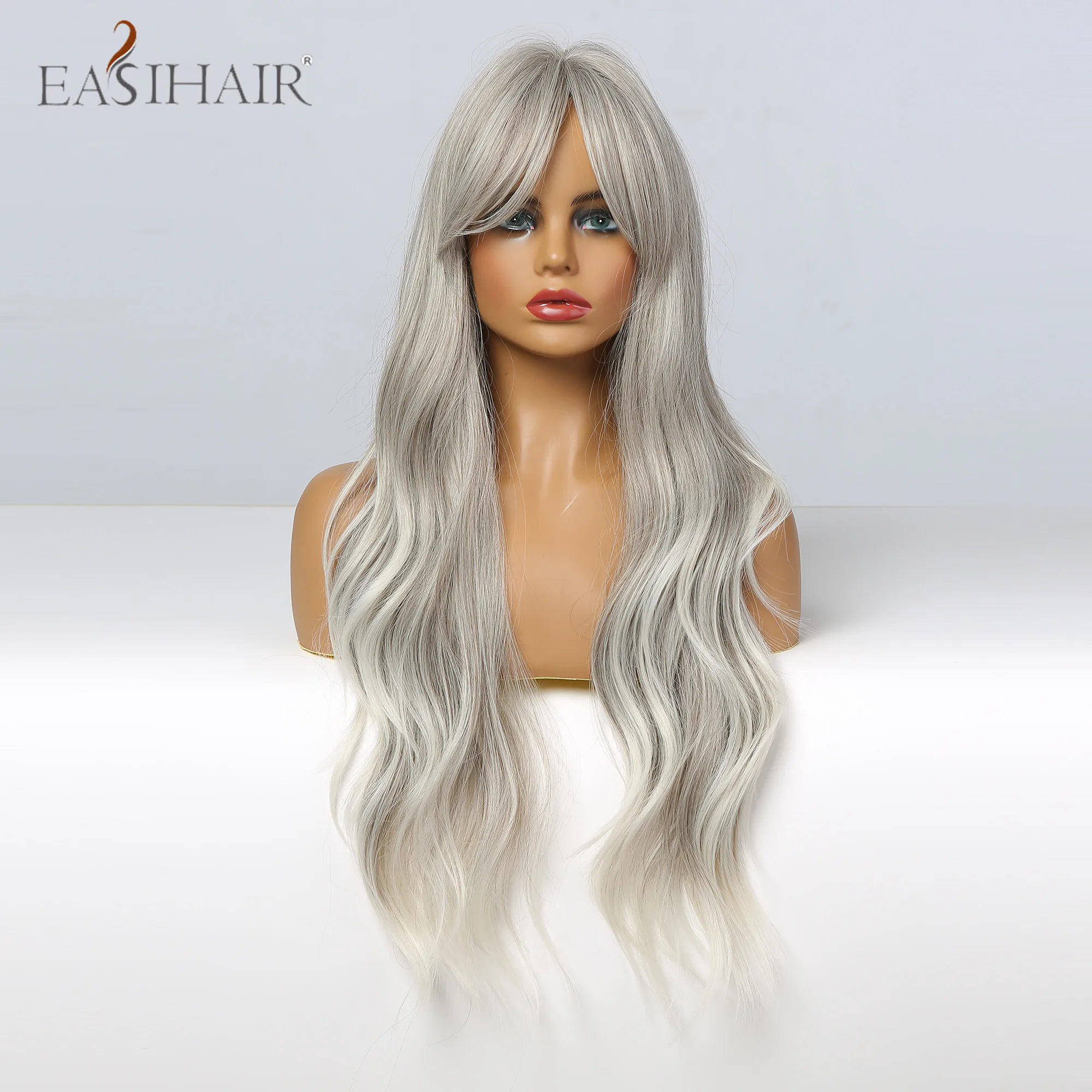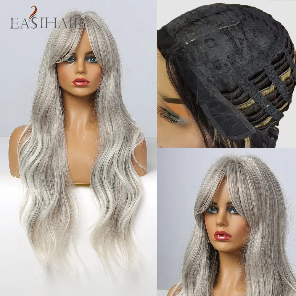 EASIHAIR синтетические волнистые длинные серебристые серые блонд Омбре синтетические парики с челкой термостойкие волокна косплей парики для женщин