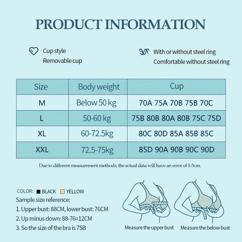 Размер L:64 см (25,20 ")----------- 42 см (16,54")---------- 50-60 кг ------------ 34/75B 、 36/80B 、 36/80A 34/75C, 34/75D