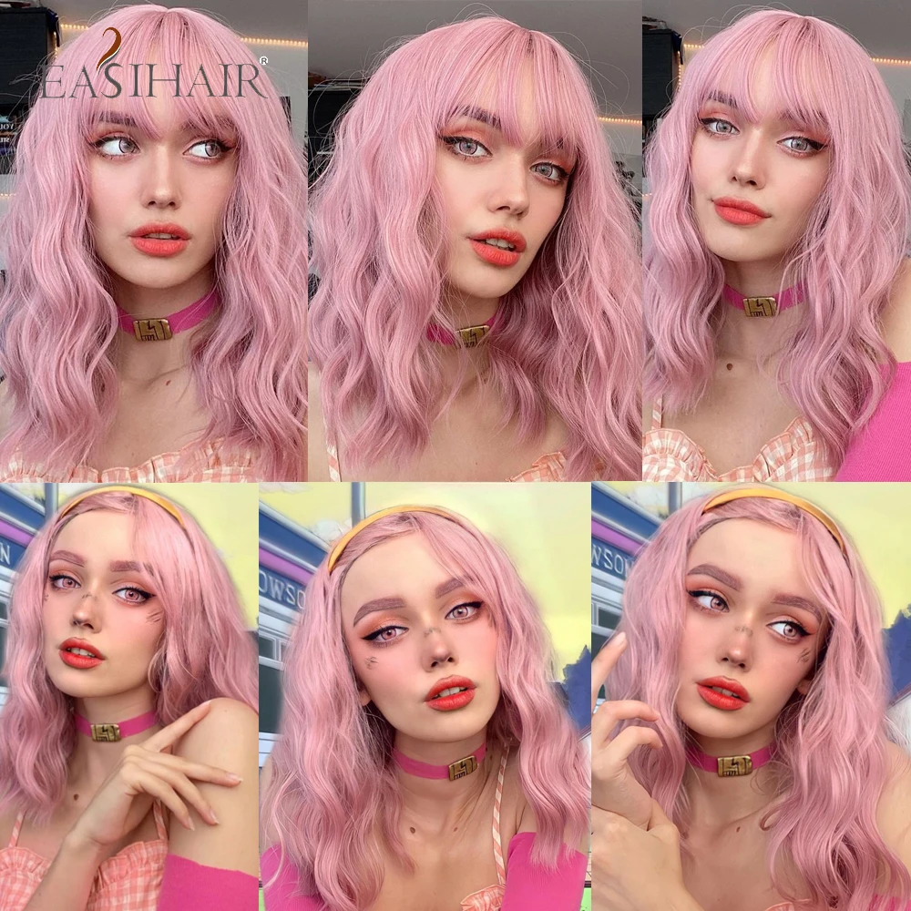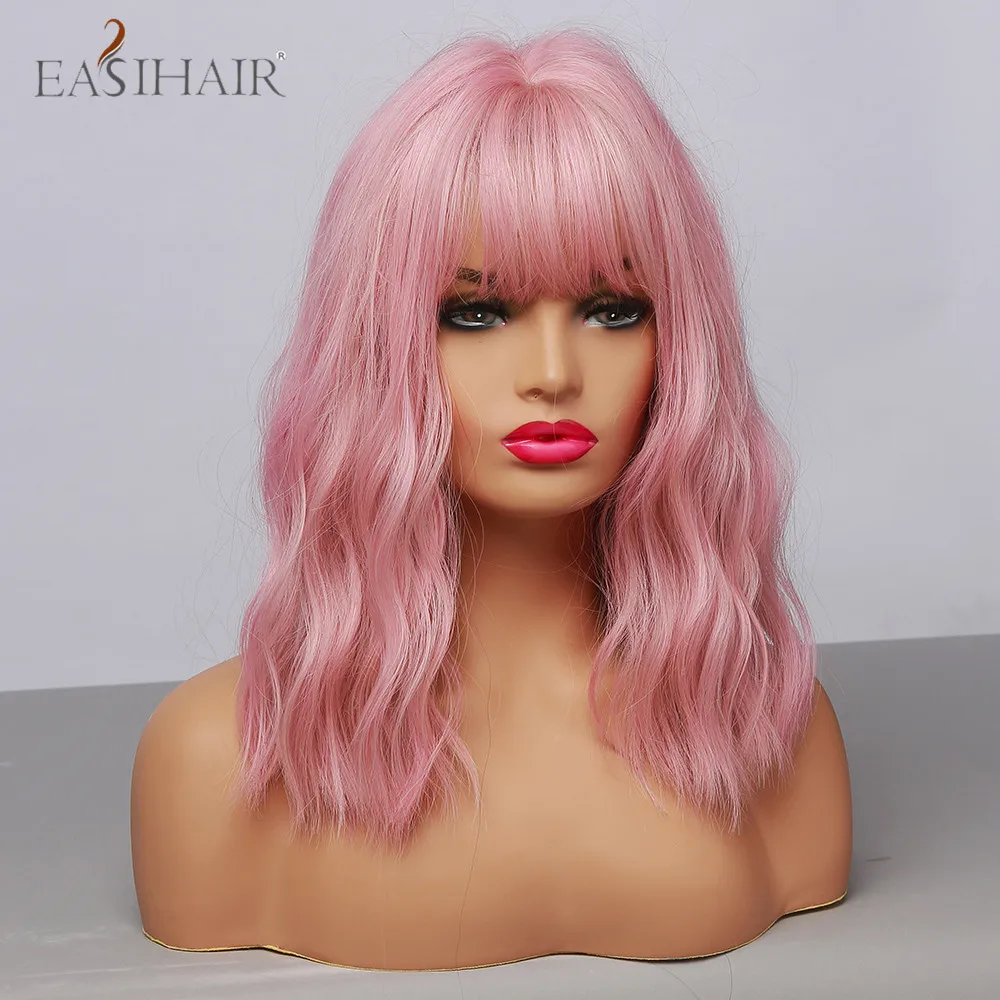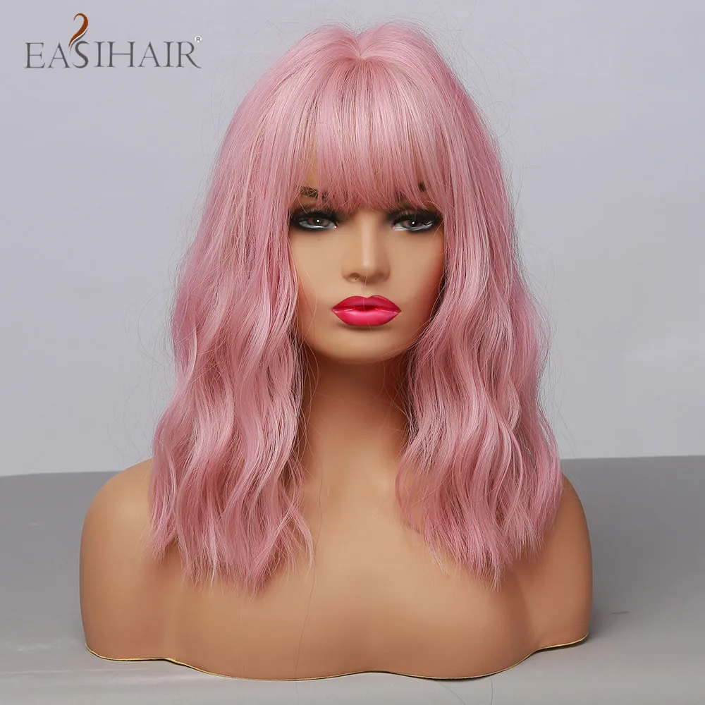 Искусственные парики с челкой для косплея «розовая Боб»