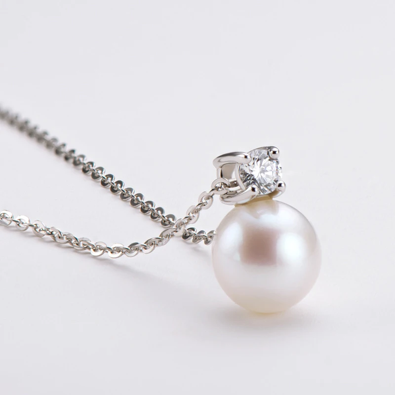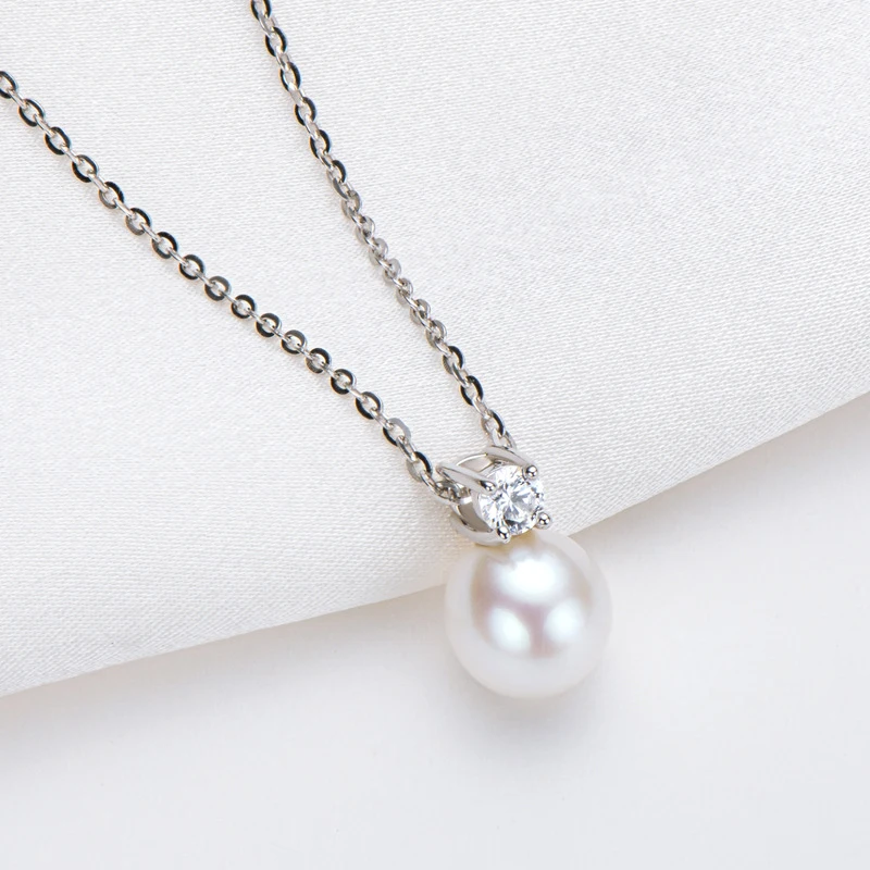 Название:Knobspin, 100% Стерлинговое Серебро 925 пробы, 2021, модное классическое ожерелье с белым жемчугом и высокоуглеродным бриллиантом для женщин, ювелирные украшения для свадьбы