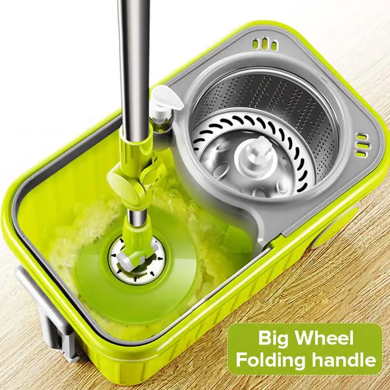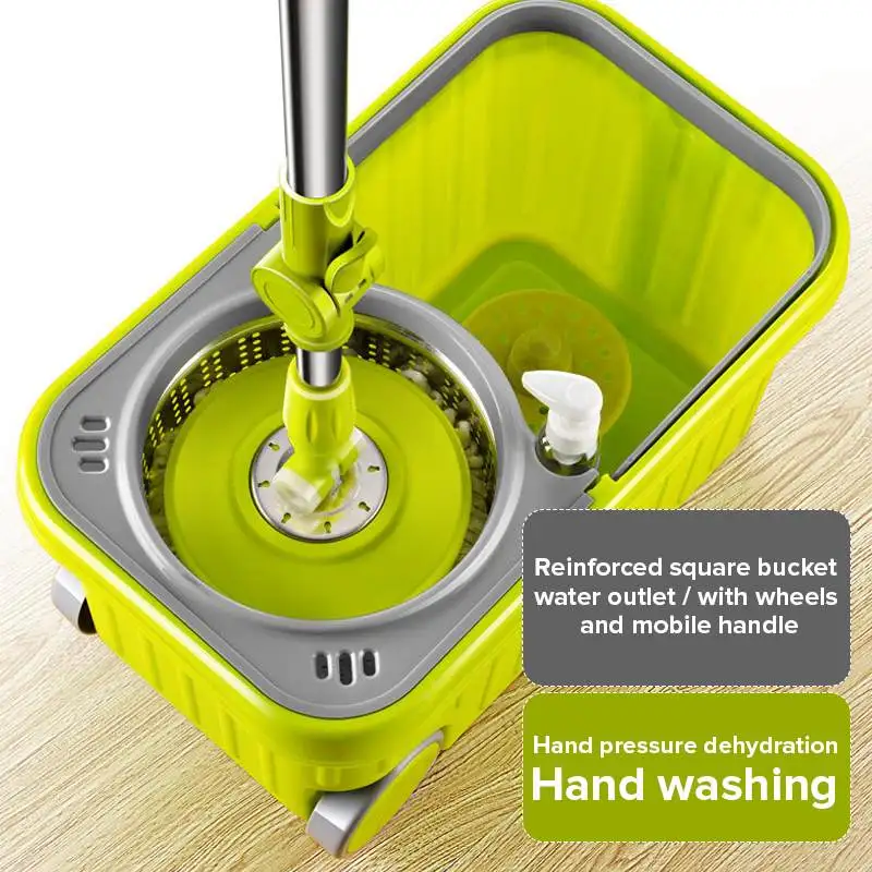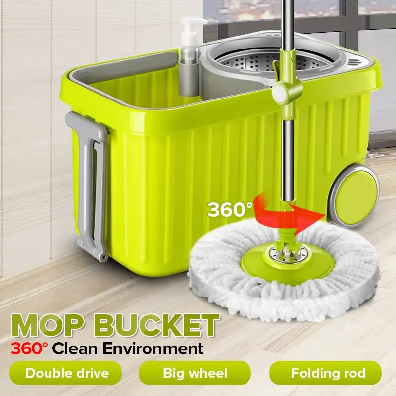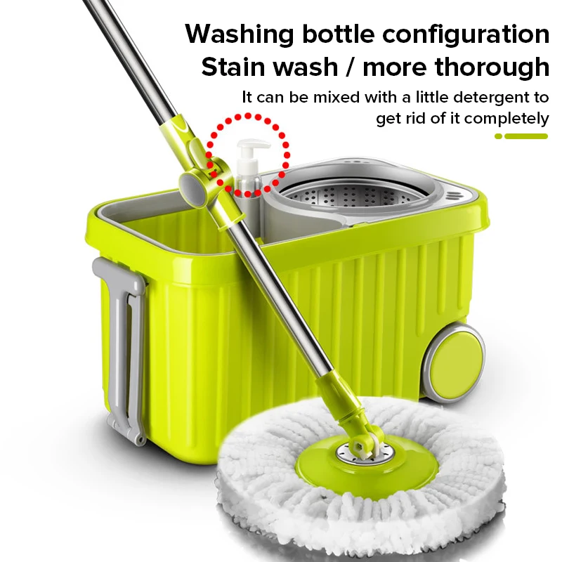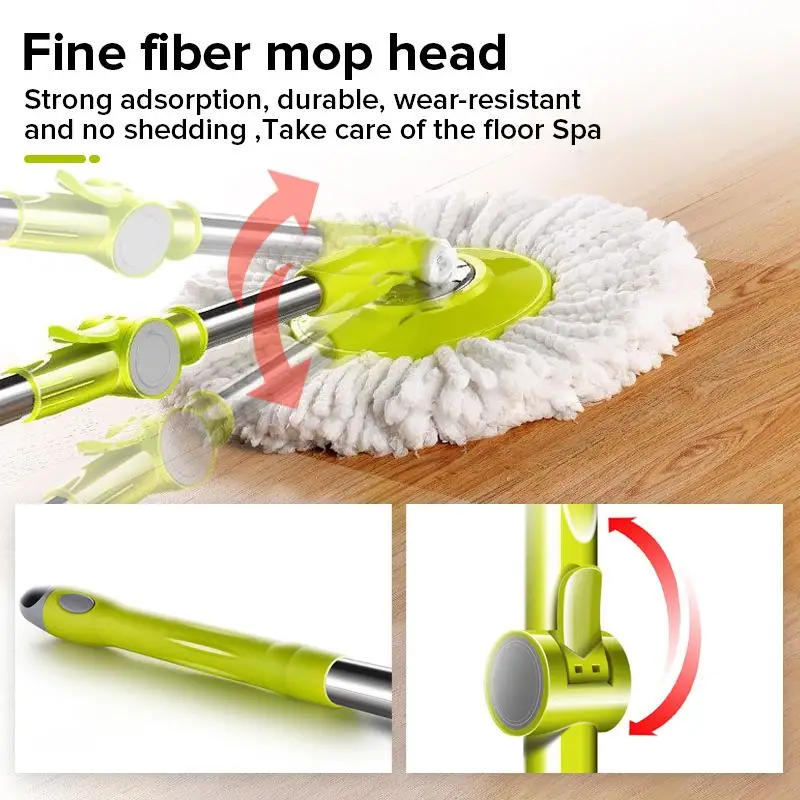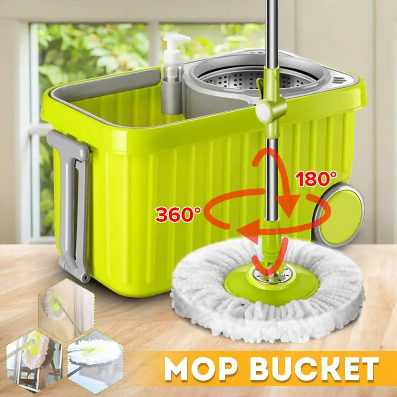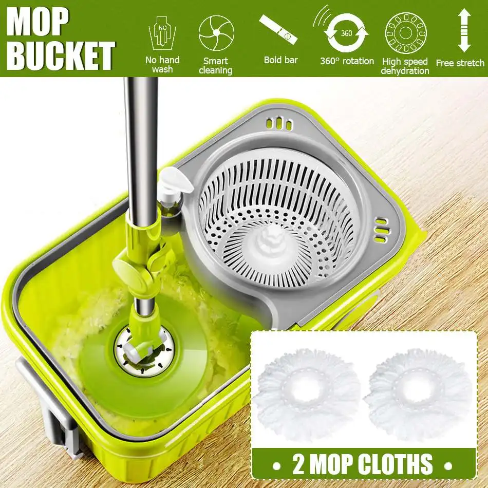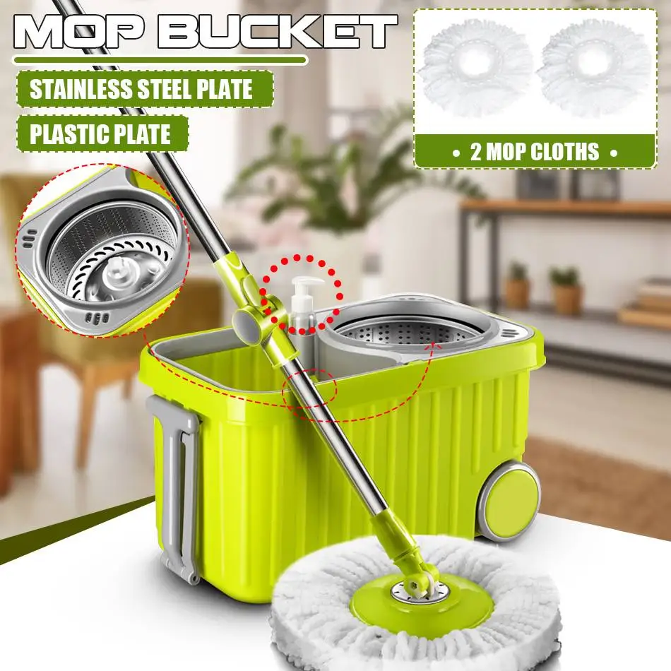 Spin Mop and Bucket, 360 Degree Rotatable Mops Kitchen Absorbent Lazy Mop Home Cleaning Wash and Dry Floors Mop with 2 Reusable Pads,