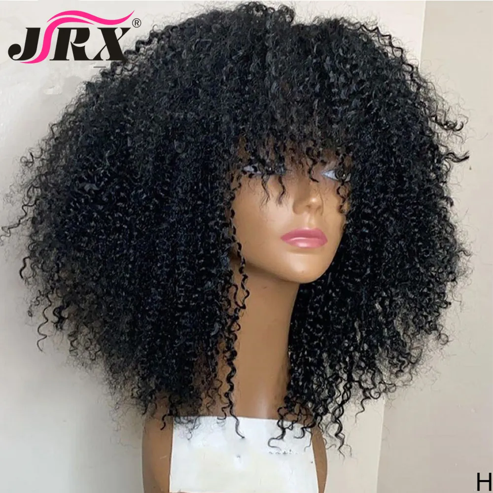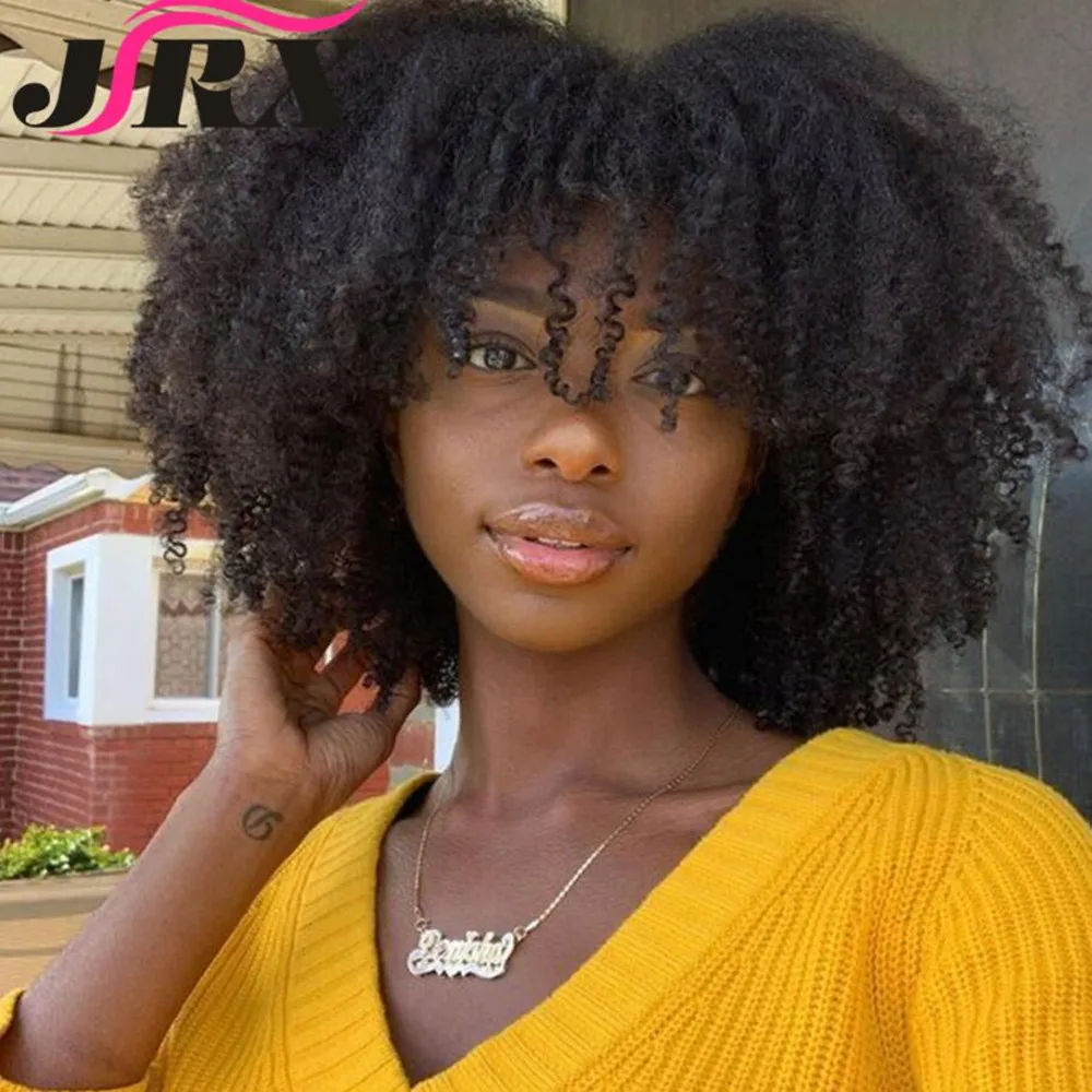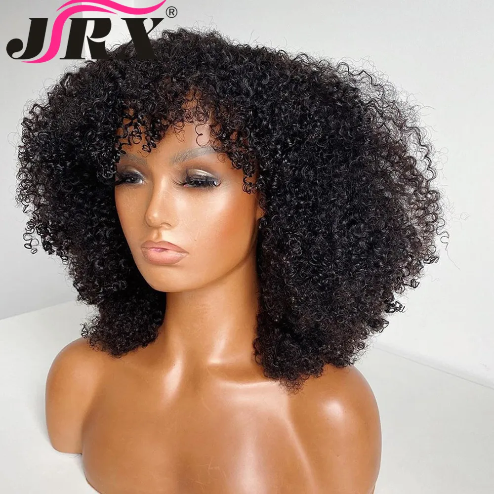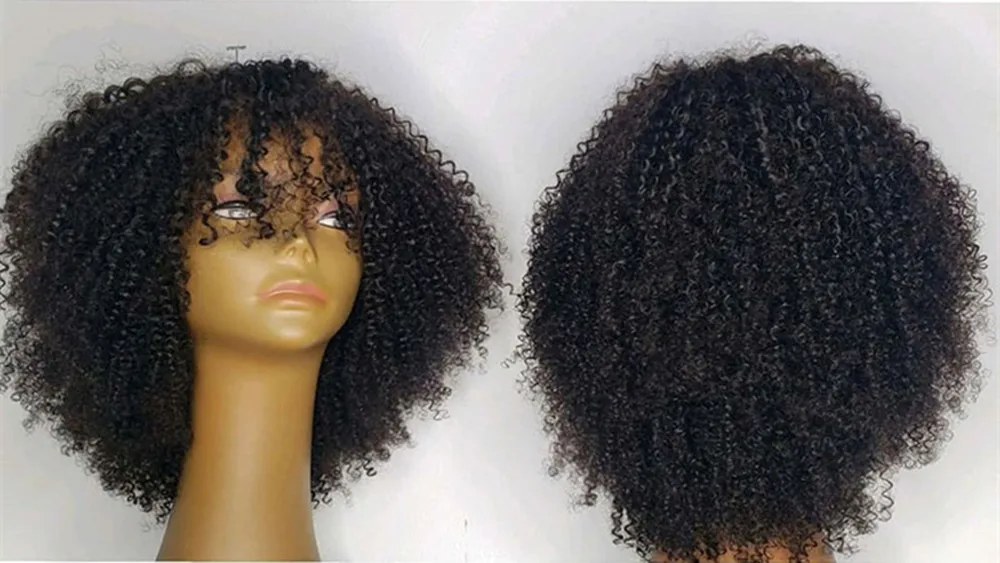 Монгольские афро кудрявые человеческие волосы парики с челкой короткие бразильские Remy человеческие волосы машина сделал парики для женщин Glueless