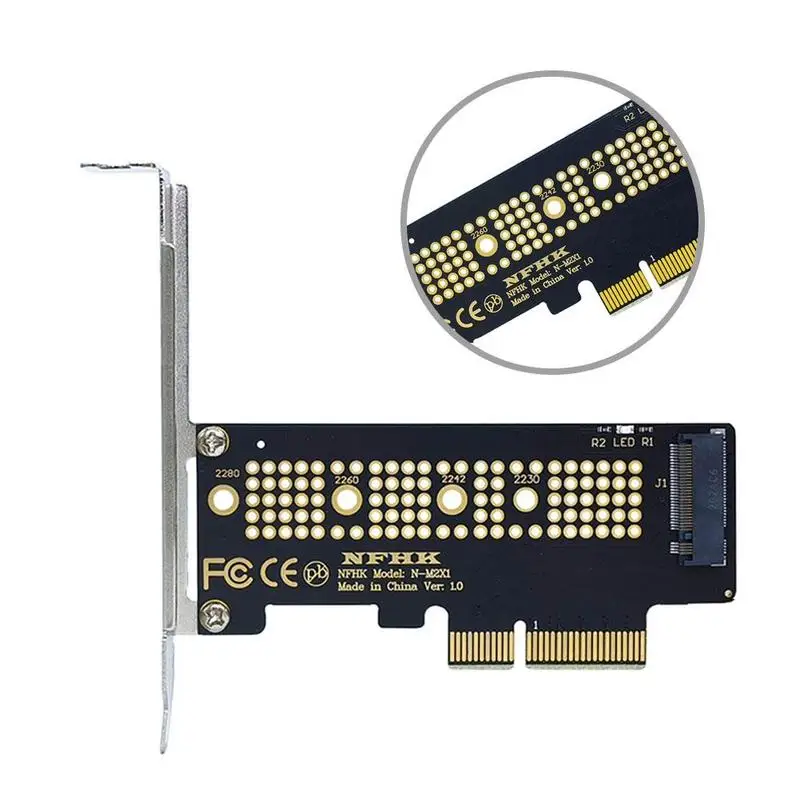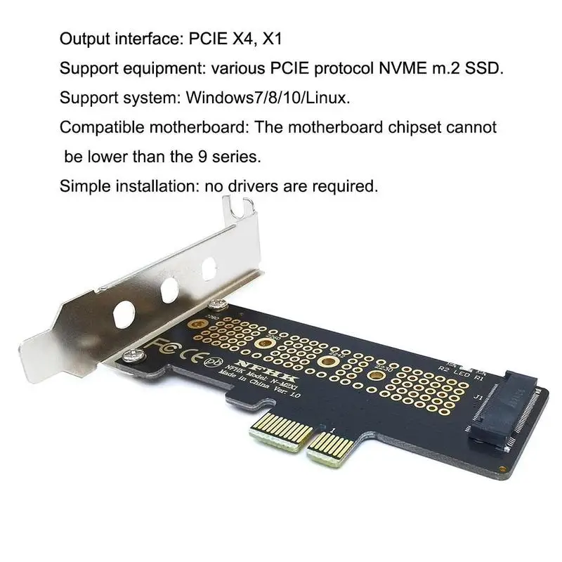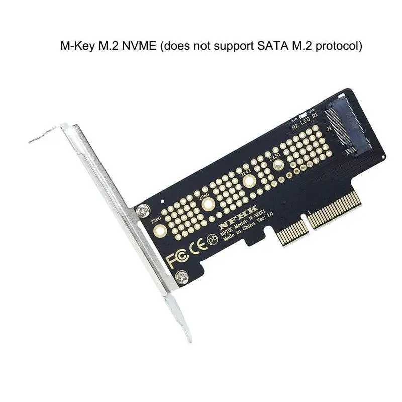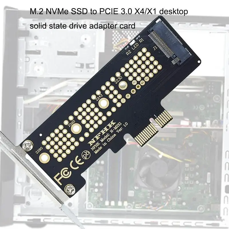 M.2 NVMe SSD для PCIE 3,0 X16/X8/X4/X1 настольная карта адаптера твердотельного накопителя Примечание: Поддерживает только Протокол PCIe x4 x2 NVMe размером 2280 2260 2242 2230 И размер поддержки 2280 2260 2242 2230 PCIe x4 x2 протокол AHCI Твердотельный накопитель M.2 NGFF SSD Примечание: Протокол AHCI не является протоколом SATA. Подробности можно узнать у Baidu. Входной интерфейс: M-Key M.2 NVME (не поддерживает протокол SATA M.2). Характеристики поддержки: 2230, 2242, 2260, 2280 Размер SSD Выходной интерфейс: PCIE X16, X8, X4, X1 Вспомогательное оборудование: различный протокол PCIE NVME m.2 SSD. Система поддержки: Windows7/8/10/Linux. Совместимая Материнская плата: чипсет материнской платы не может быть ниже 9-й серии. Простая установка: Драйверы не требуются. Подъемная карта имеет полая конструкция, которая уже хорошо отводит тепло. Нет необходимости добавлять радиаторы в «сделай сам», нет лучшего эффекта рассеивания тепла. Посылка входит: 1 * карта адаптера