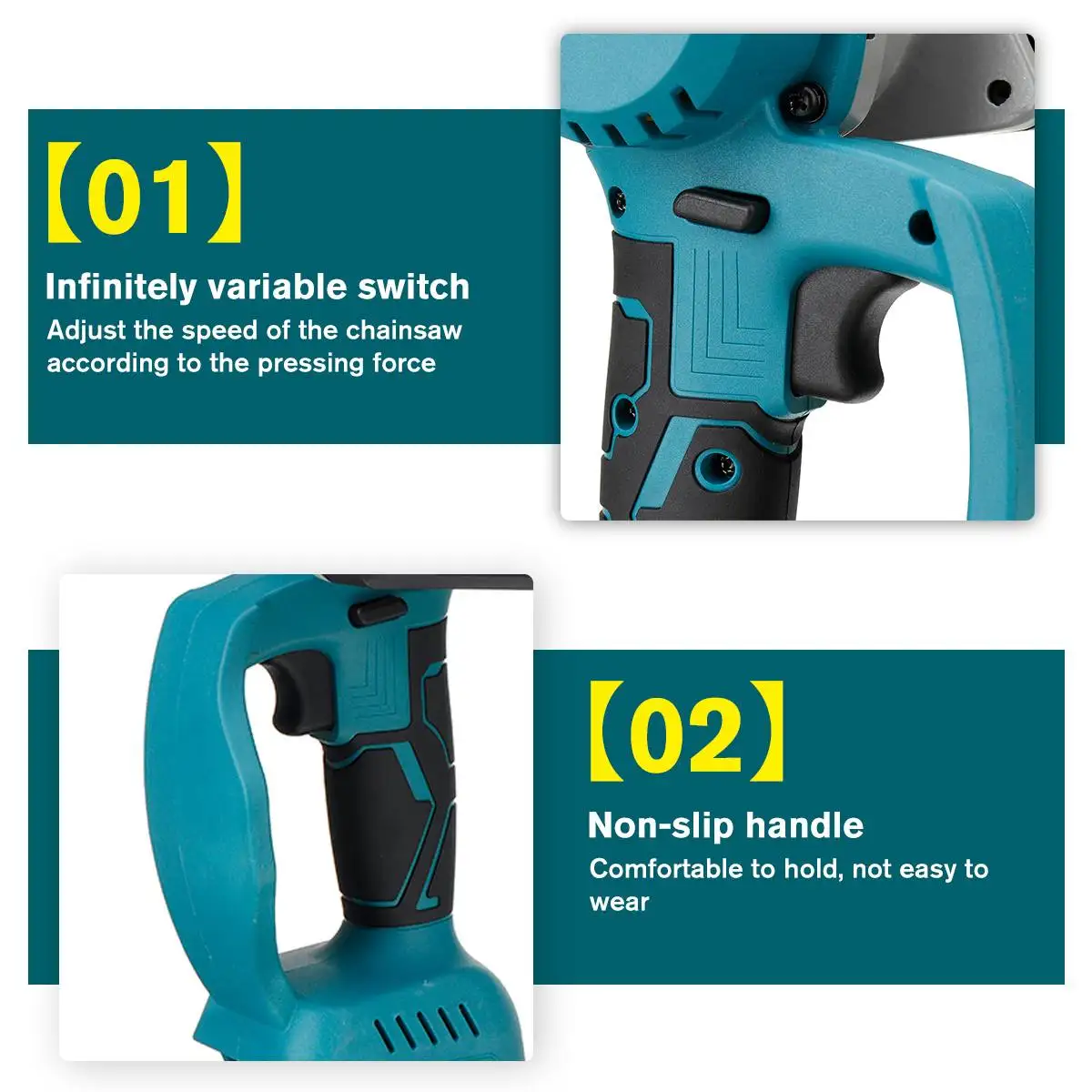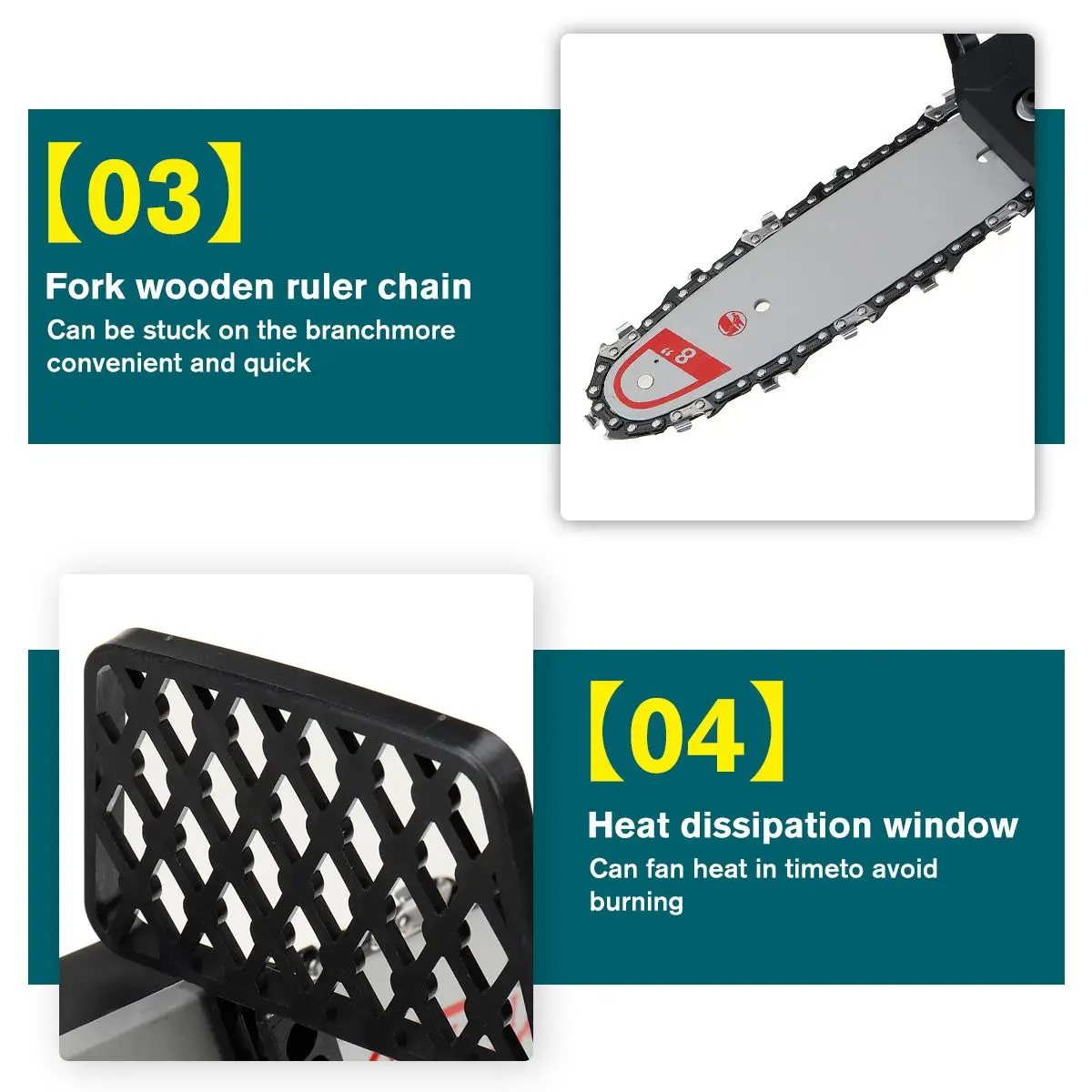 Используйте безщеточный мотор для внешнего ротора. Поскольку цепь непосредственно вращается ротором без использования зубчатых колес или муфт, практически нет потери электричества или механических потерь, а мощность двигателя снижена. Я вам прямо сказал. Лезвие цепи было удалено, когда продукт покидает фабрику, поэтому, пожалуйста, соберите его в соответствии с инструкцией по эксплуатации перед использованием.