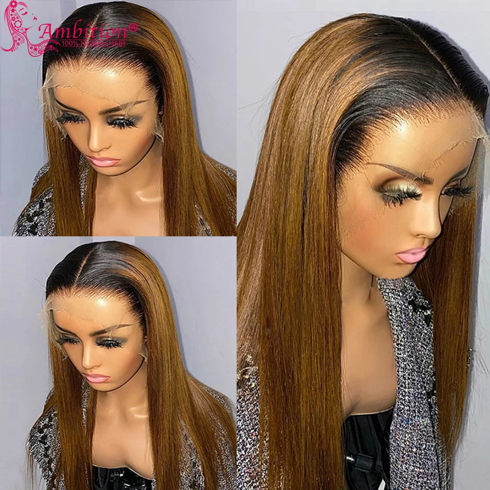 AMBITION 100% Human Hair Official Store Hair Color :Ombre Color Lace Wigs Hair Style: Straight, Wavy, Curly ,Deep Wave, Water Wave can do Lace Color : HD transaprent Or Brown lace Wig Wig Density: 130% 150% 180% Density Lace Parting : Real 13x4 Lace Front Wigs (13x6 wig can customized )
