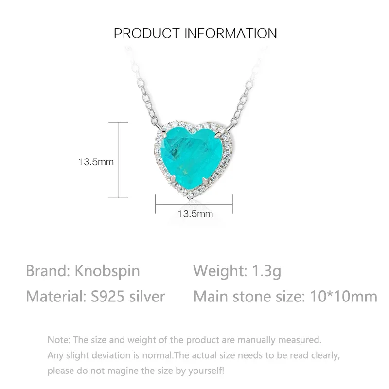 Название:Knobspin 100% Стерлинговое Серебро 925 пробы 2021 Мода в форме сердца Турмалин любовь для очаровательных женщин ожерелья ювелирные украшения подарки свадьба