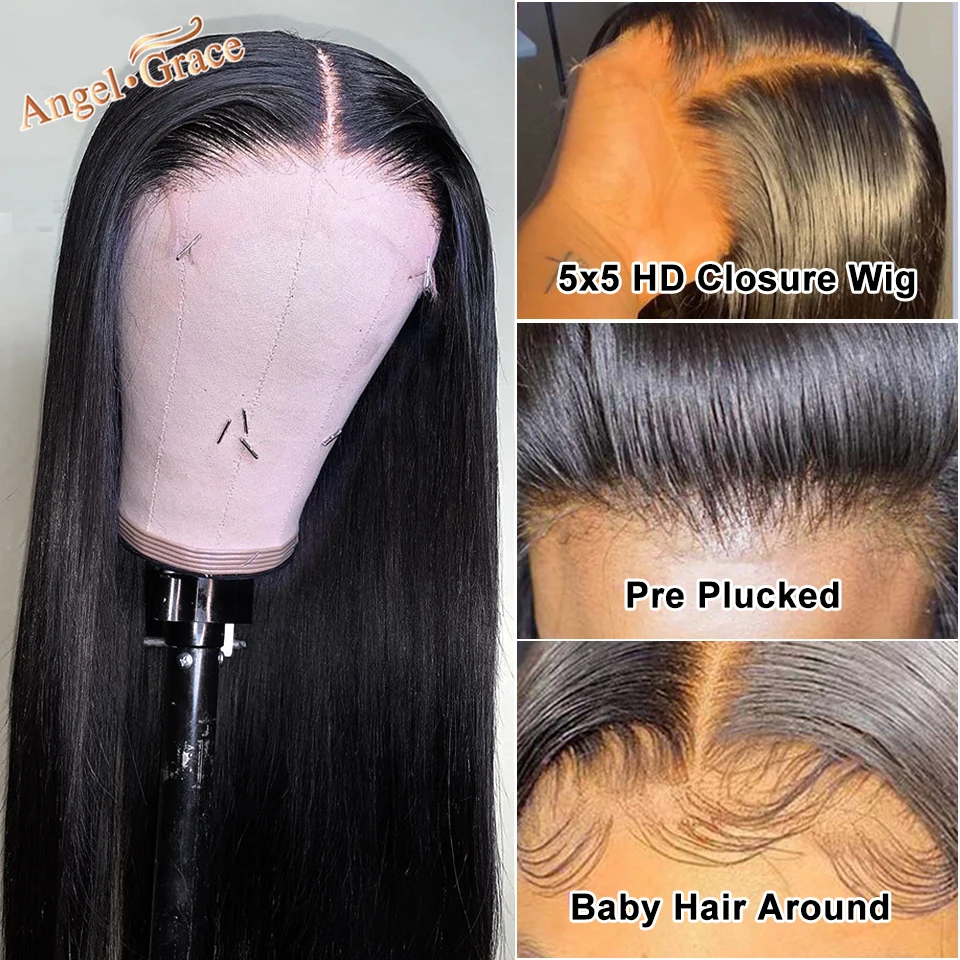 Парики из 100% человеческих волос 5*5 HD, парики плотностью 150% 180%, парики из прямых человеческих волос, полнотекстурный и блестящий парик из волос, потрясающий естественный вид