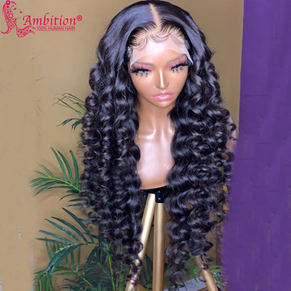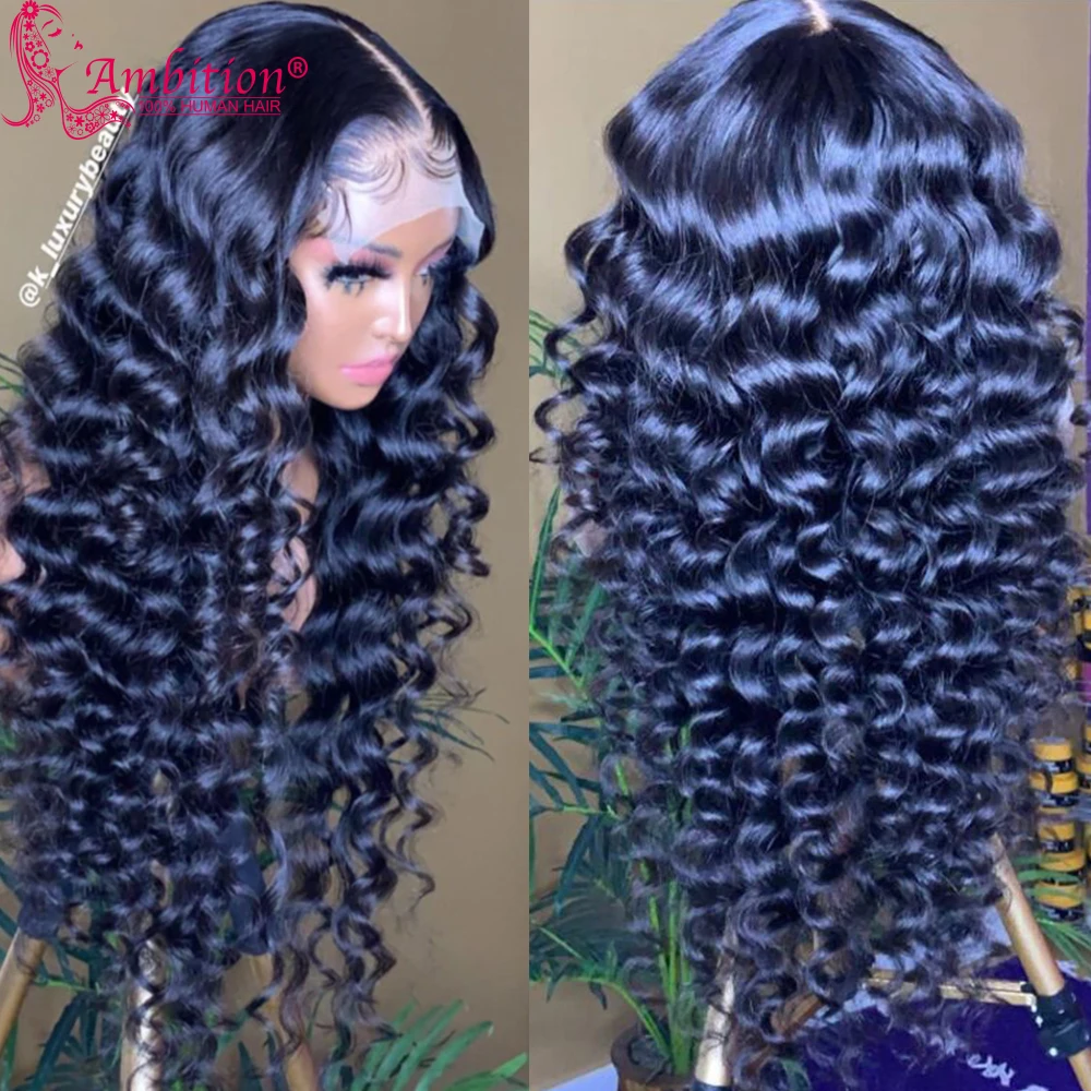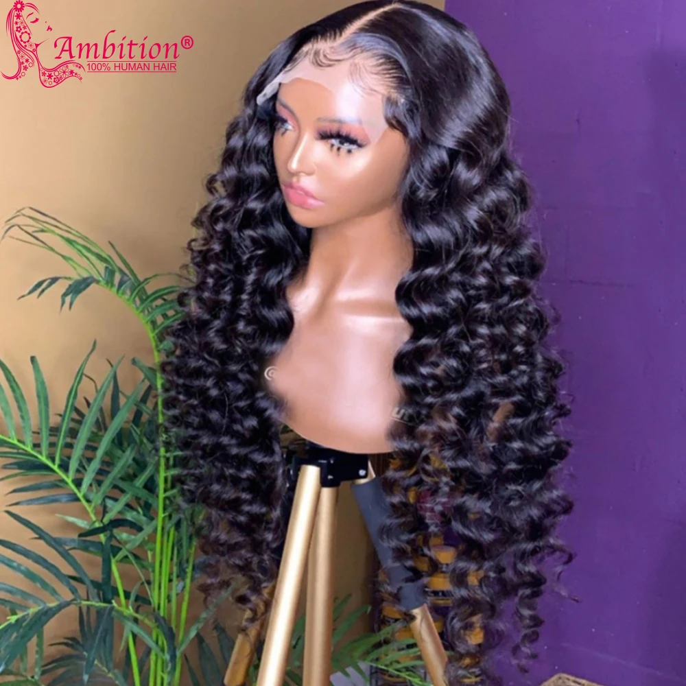 Официальный магазин из 100% человеческих волос AMBITION Цвет волос: свободные кружевные парики с глубокой волной Стиль волос: прямые, волнистые, кудрявые, глубокая волна, водная волна Цвет шнурка: высококачественное кружевное или коричневое кружево Плотность парика: 130% 150% плотность 180% Кружево: 13x5x1 T часть парика (можно сделать свободную часть и среднюю часть)