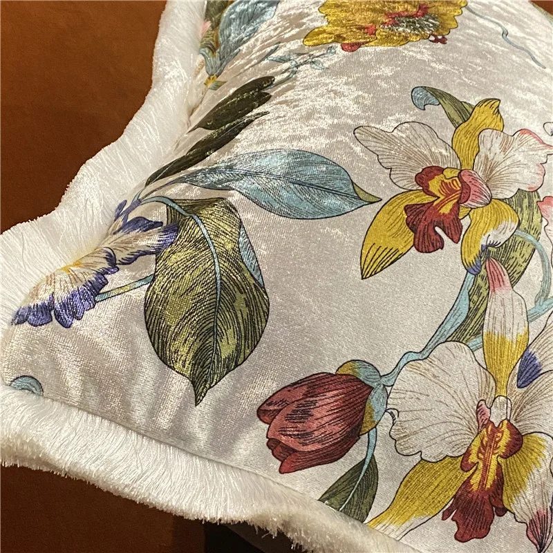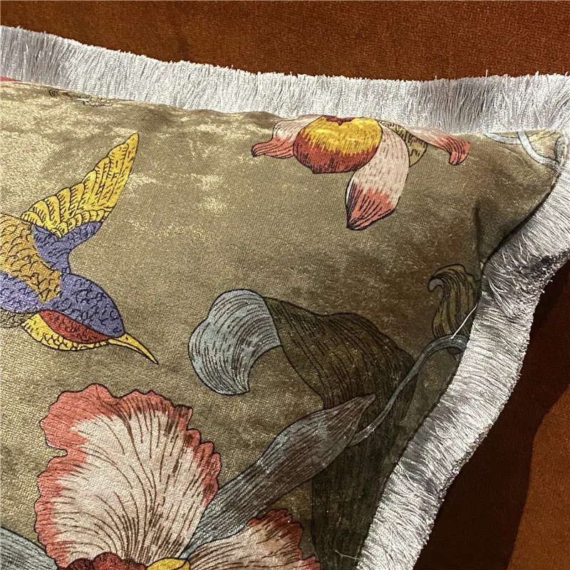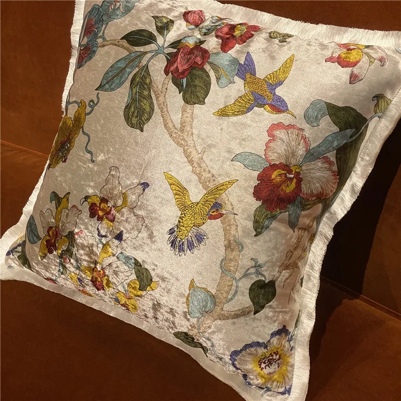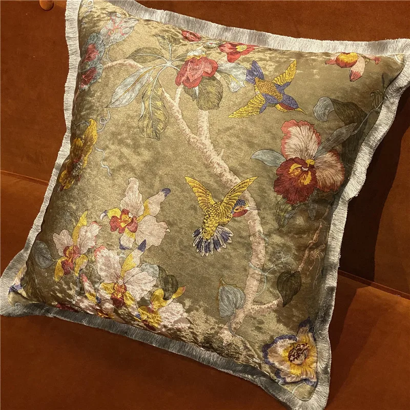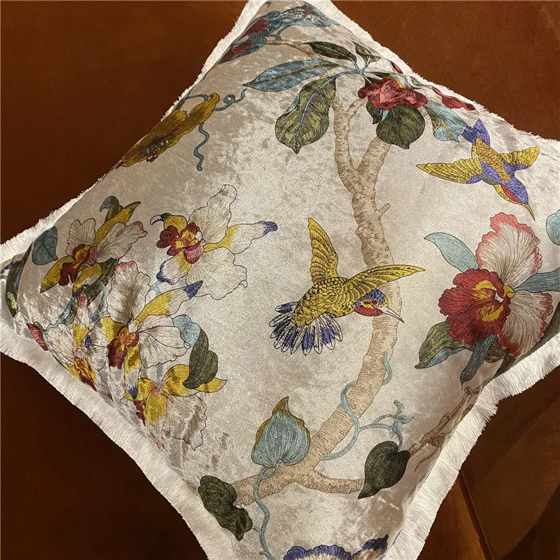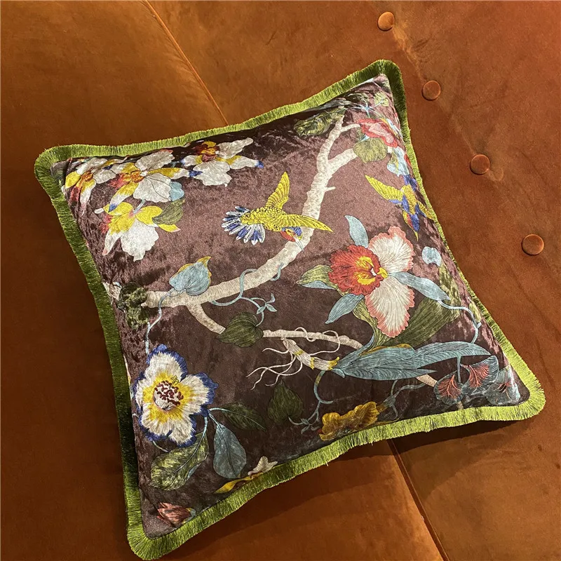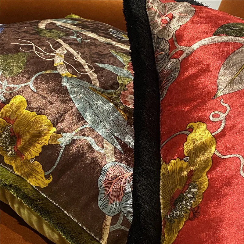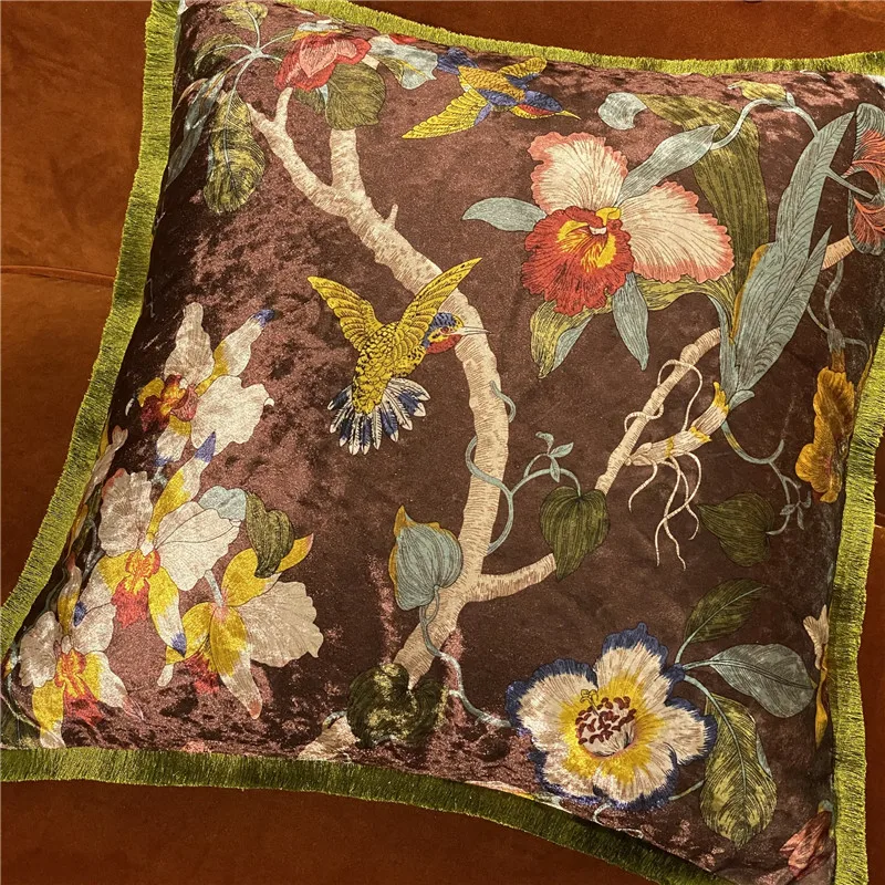 Iterm: домашний Роскошный Чехол на подушку, итальянский импортный Блестящий бархат, цветы, птицы, растения, принт, Ретро стиль, старинная подушка, чехол, красный