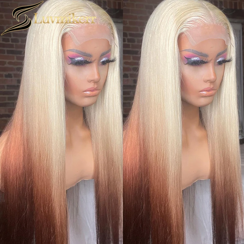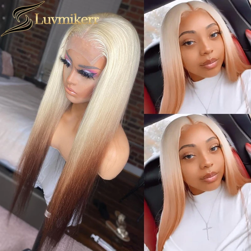 Hd прозрачный парики из натуральных волос с эффектом деграде (переход от темного к 613 блондинка Цветной 13x6 прямой парик шнурка предварительно вырезанные 30 дюймов парик для Для женщин отбеленные