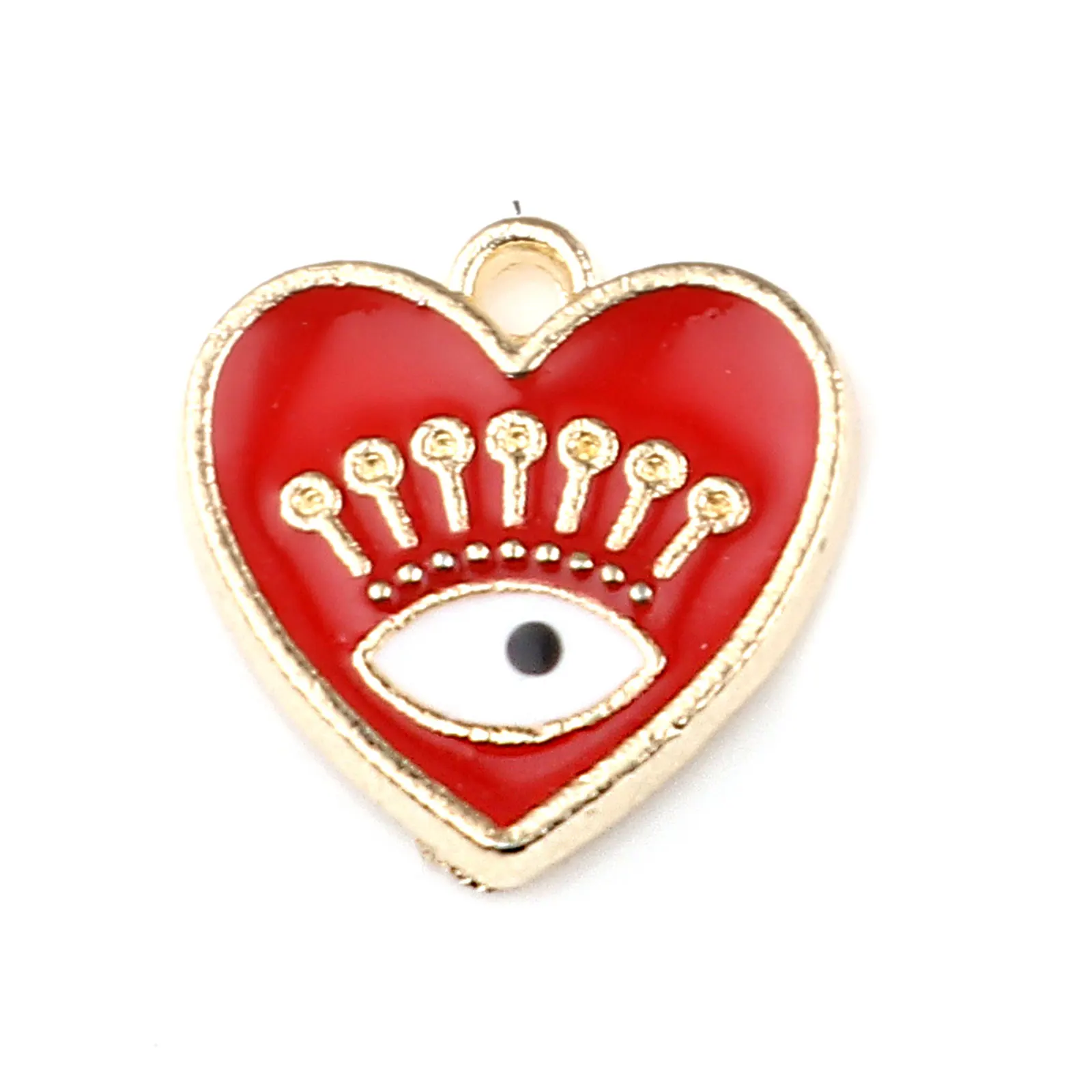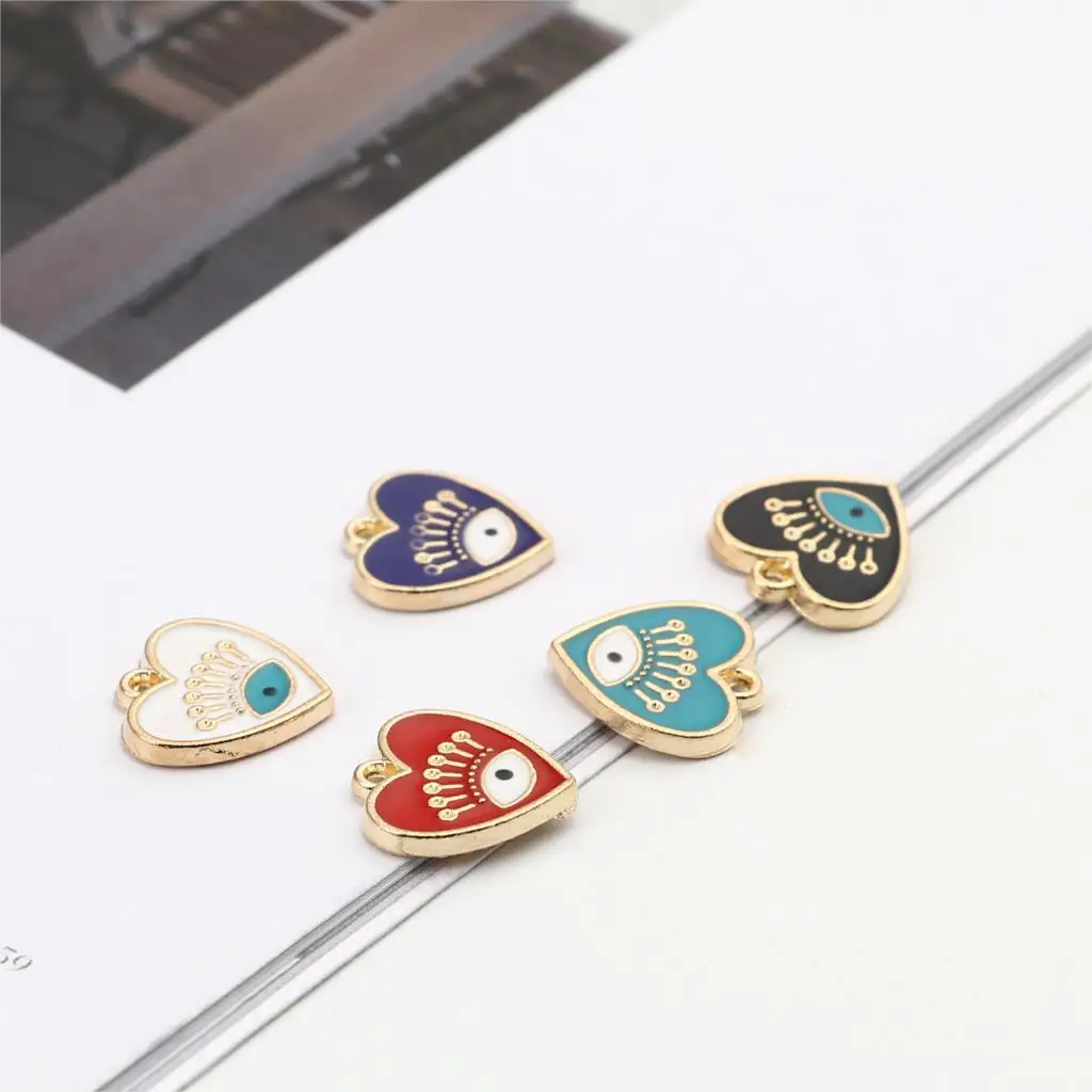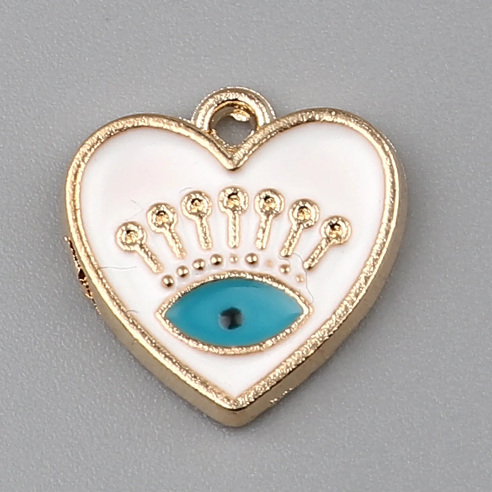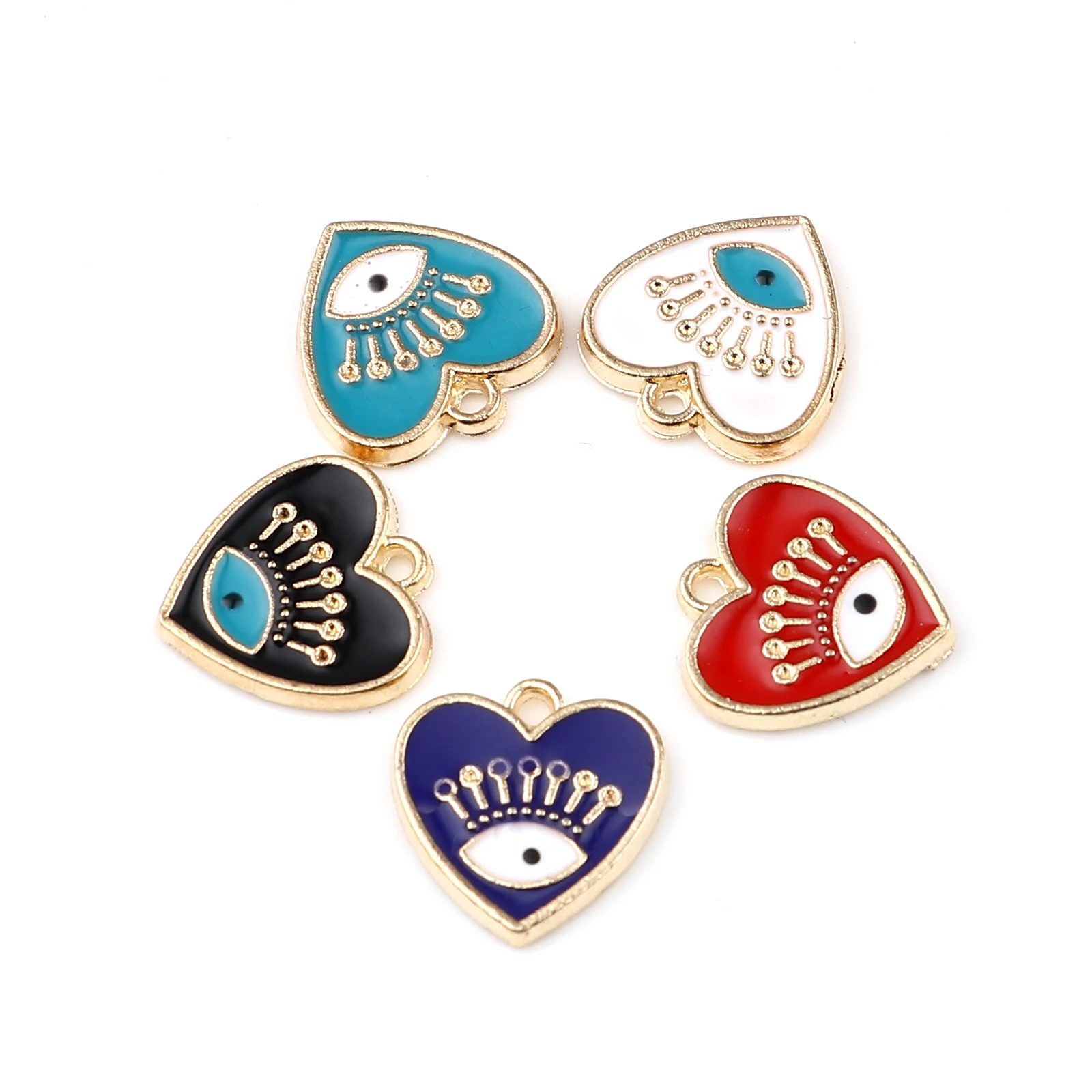 10 шт., эмаль, сердце, сглаза, подвески, сплав цинка, сердце, глаз золотого цвета, Подвески, эмалированные подвески для DIY ювелирных изделий 15x 15 мм