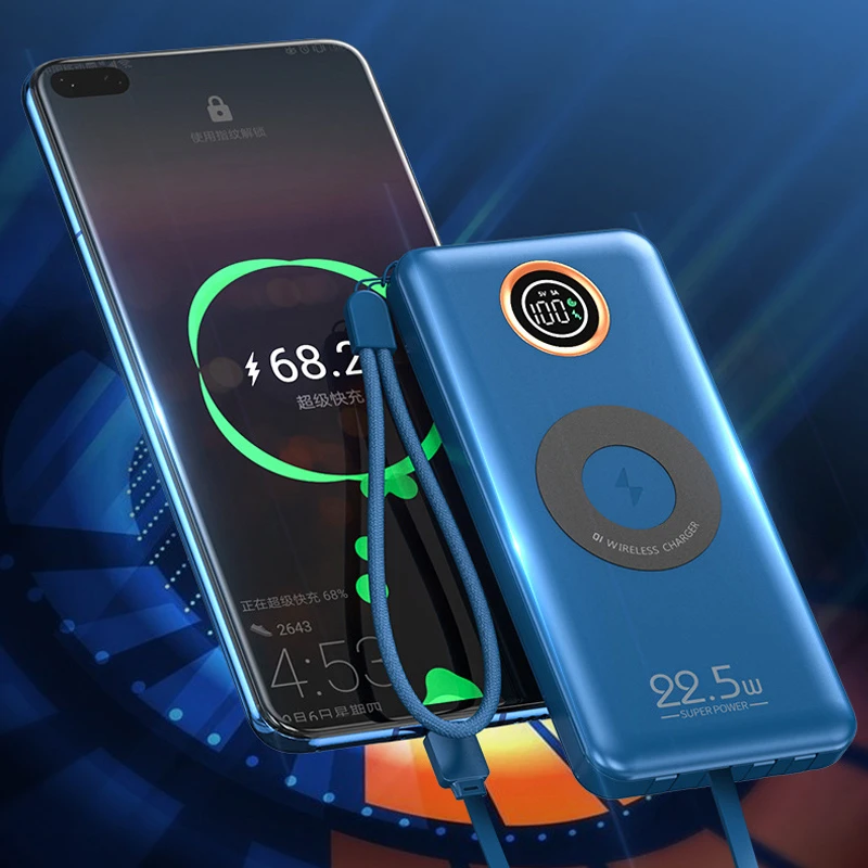 Беспроводное зарядное устройство Qi 20000 мАч, внешний аккумулятор с кабелем, 22,5 Вт, Сверхбыстрая Зарядка для Huawei, внешний аккумулятор для iPhone 12, Xiaomi, внешний аккумулятор