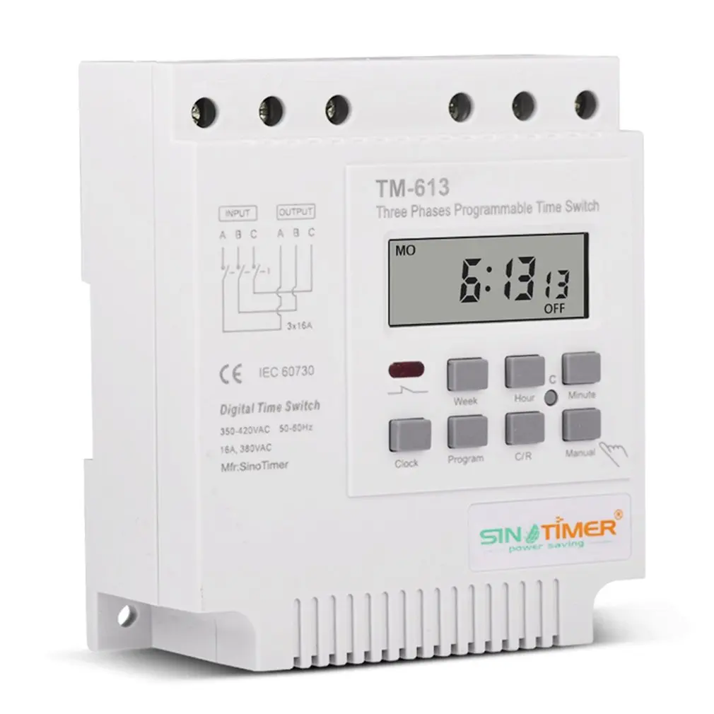 1. Трехфазный цифровой переключатель времени в течение 7 дней-24 часов: Этот переключатель имеет трехфазный цифровой переключатель времени в течение 7 дней-24 часов.