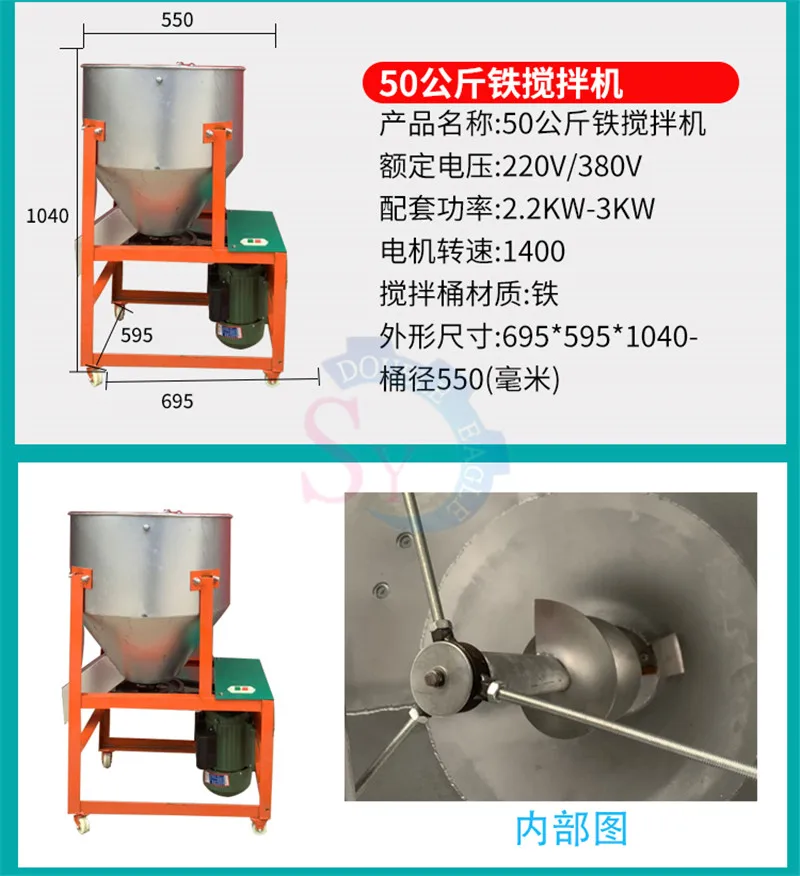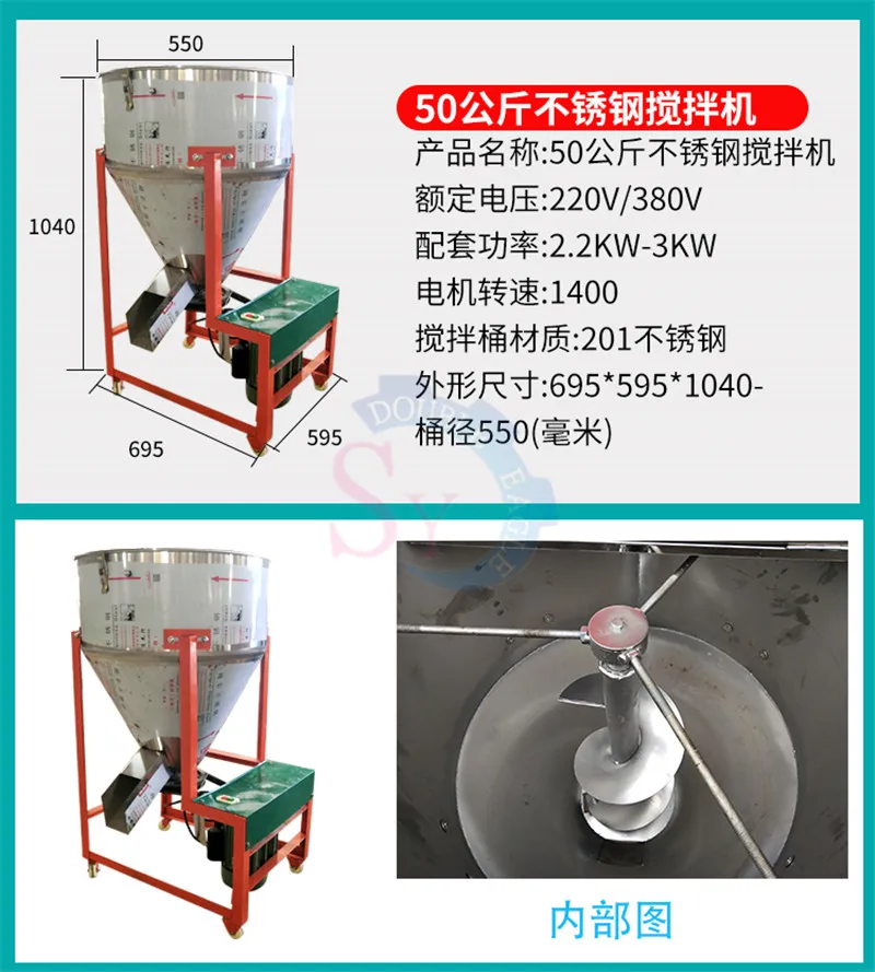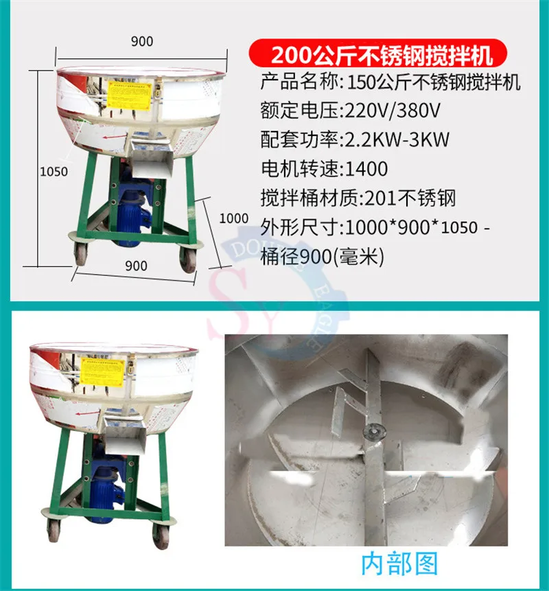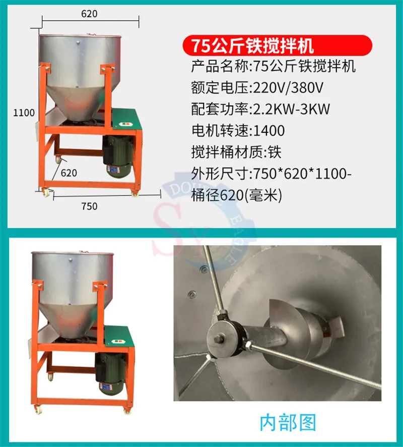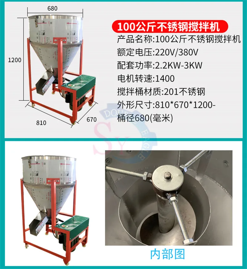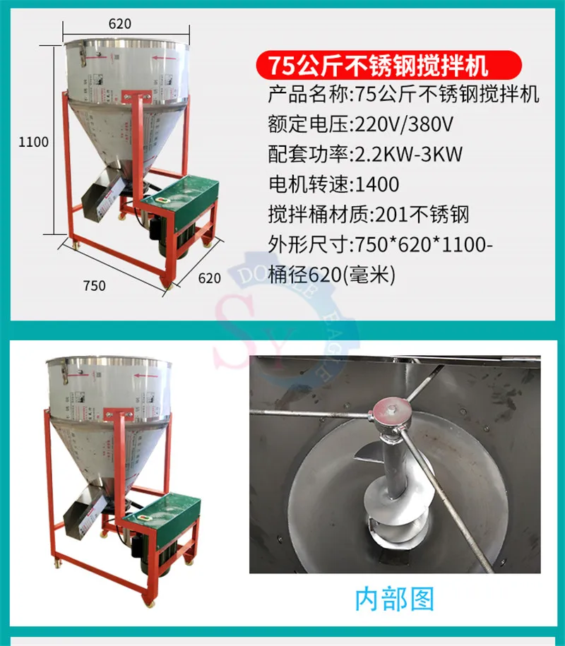 Название продукта: смеситель подачиНоминальное напряжение: 220 В/380 ВМощность: 3 кВтМатериал перемешивания: 201 нержавеющая стальДиаметр ствола: 680 ммРазмер: 810*670*1200 ммОсобенности:Подходит для смешивания сыпучих сухих порошков или гранулированных материалов, не для смешивания вязких материаловПосылка:1 * смеситель подачи1. Цена отправляется на лодке, и эта стоимость только