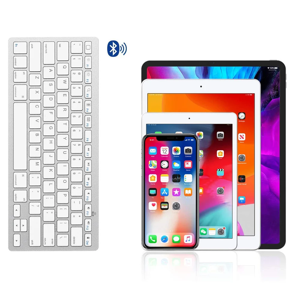 Размер и вес продукции: Размеры клавиатуры: 28,5 см x 12 см x 2 см Примечание: Это Bluetooth-клавиатура. Она работает, подключая bluetooth. Можно переключать язык. После подключения клавиатуры Bluetooth нажмите Fn + F6, чтобы изменить язык.