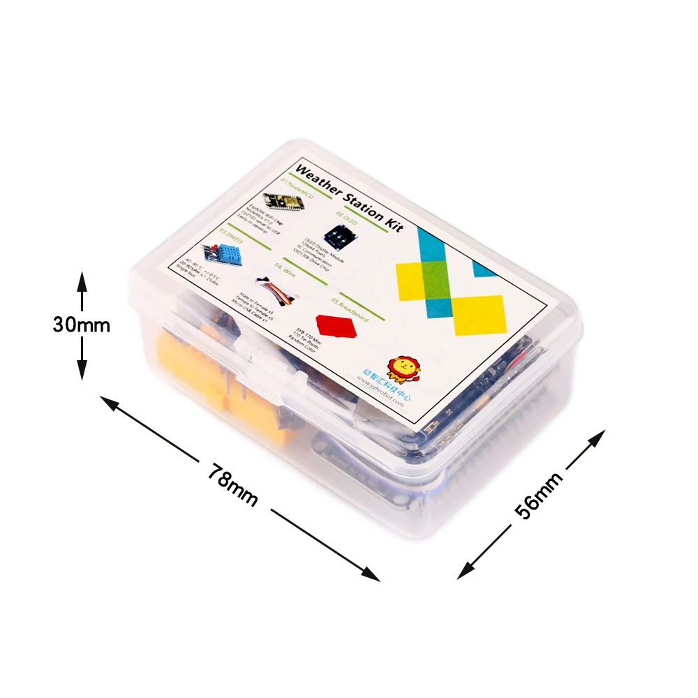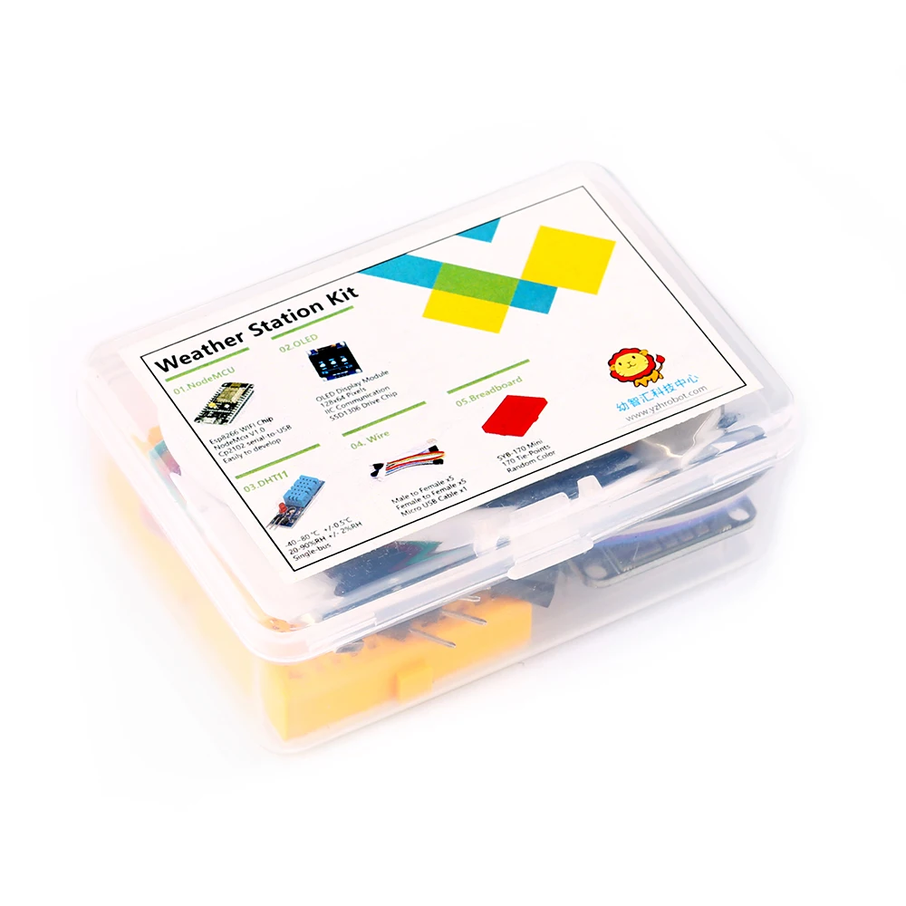 1xESP8266-12E 1xDHT11 1 дисплей xOLED 1X usb-кабель 1xbreadboard Кабель 10xdupont
