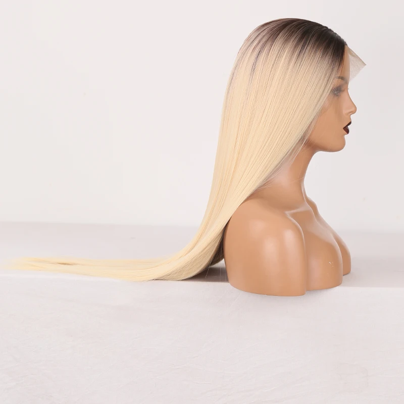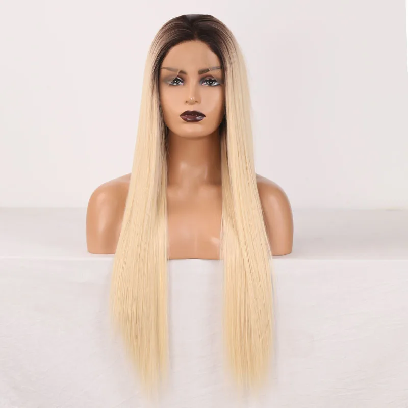 Парик из синтетического кружева с коричневыми корнями, длинные шелковистые прямые волосы, парики для женщин, парики для косплея