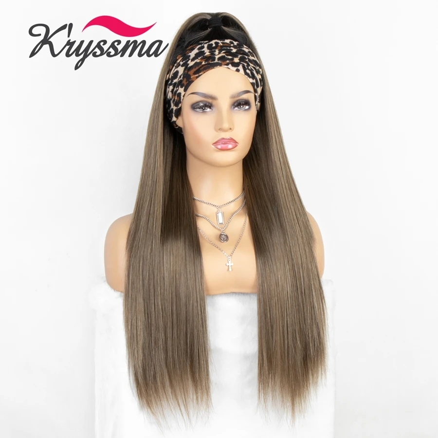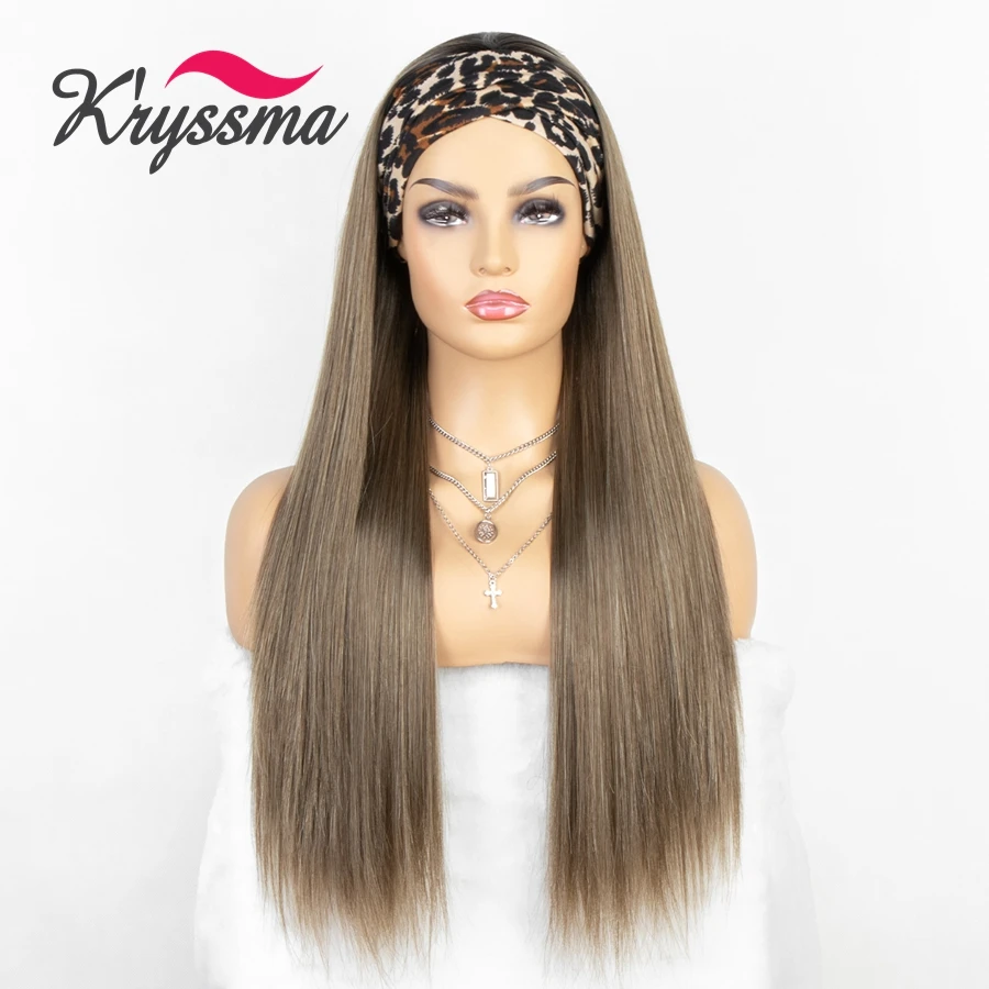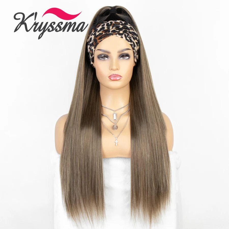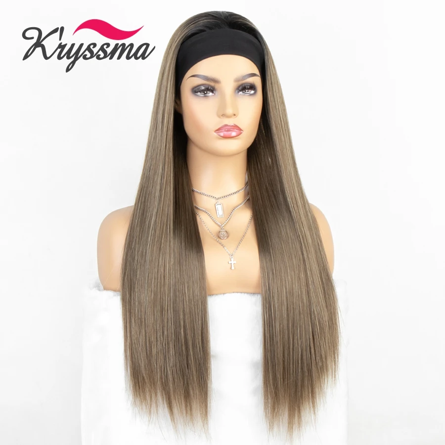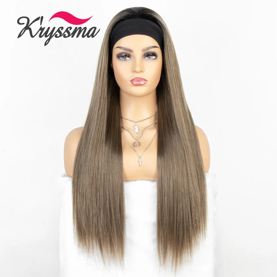 Kryssma длинный шелковистый прямой парик, синтетический парик, головная повязка, синтетические парики для женщин, натуральные парики для волос с полной машинкой
