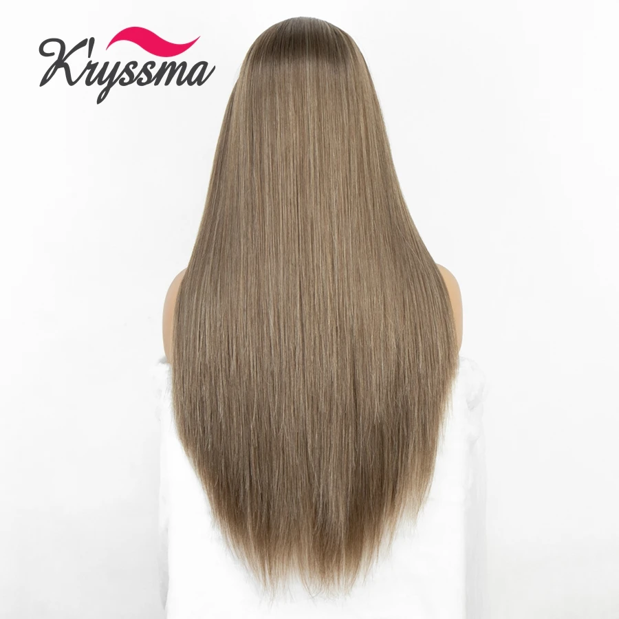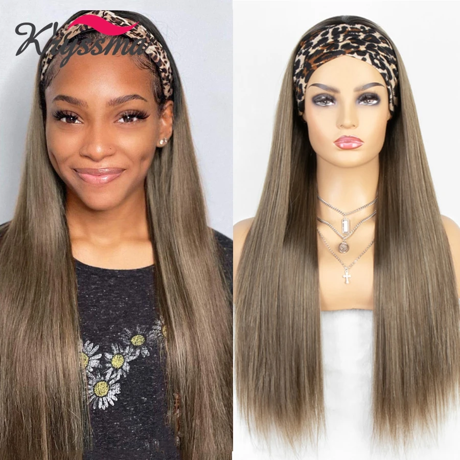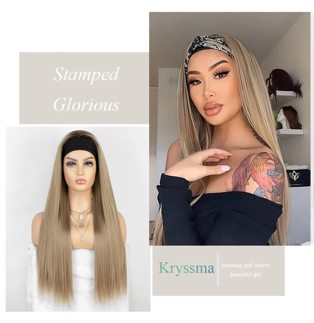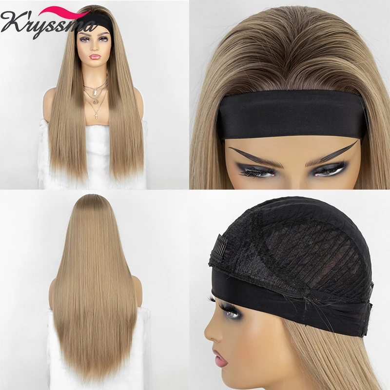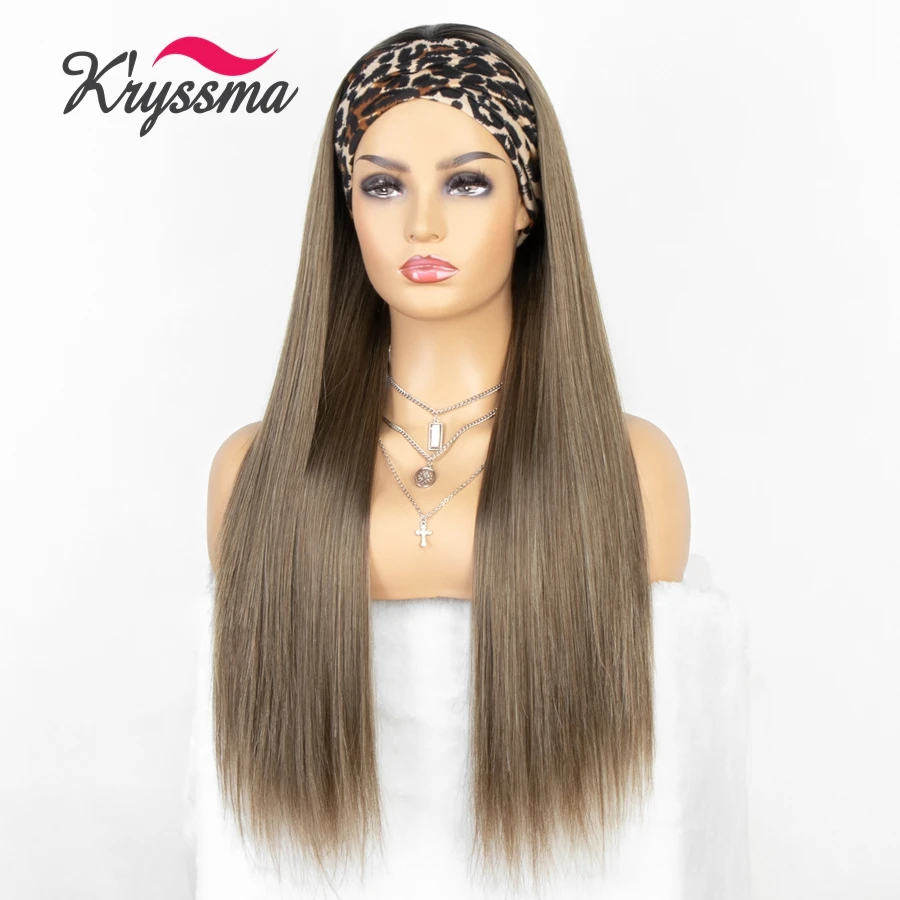 Kryssma длинный шелковистый прямой парик, синтетический парик, головная повязка, синтетические парики для женщин, натуральные парики для волос с полной машинкой